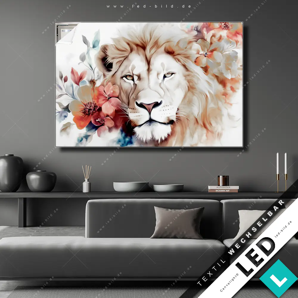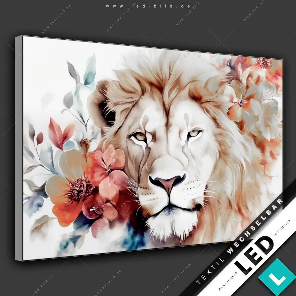 Florales Löwenbild | Modern, individuell, brillant – dein LED Bild nach Maß