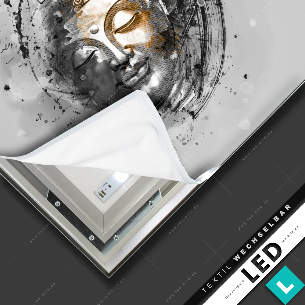 Buddha-Porträt in moderner Tintenkunst | Modern, individuell, brillant – dein LED Bild nach Maß