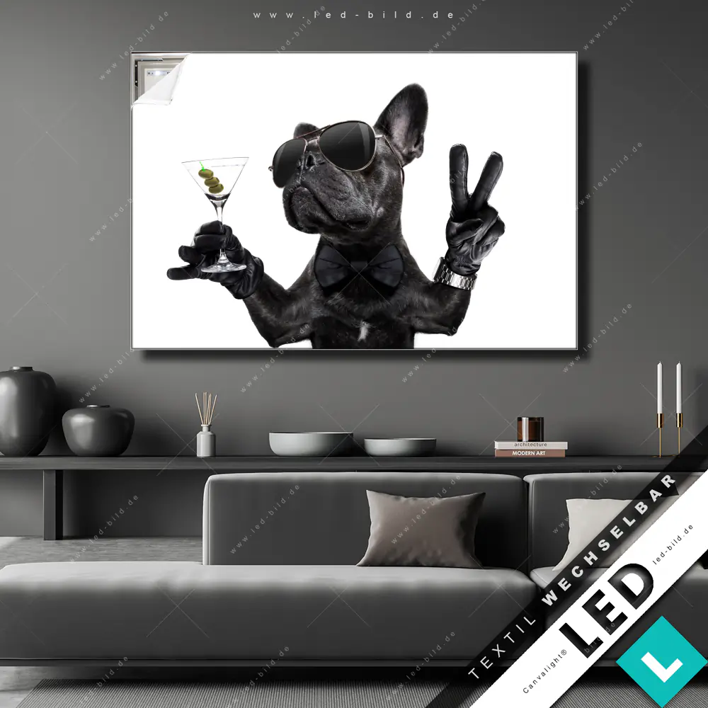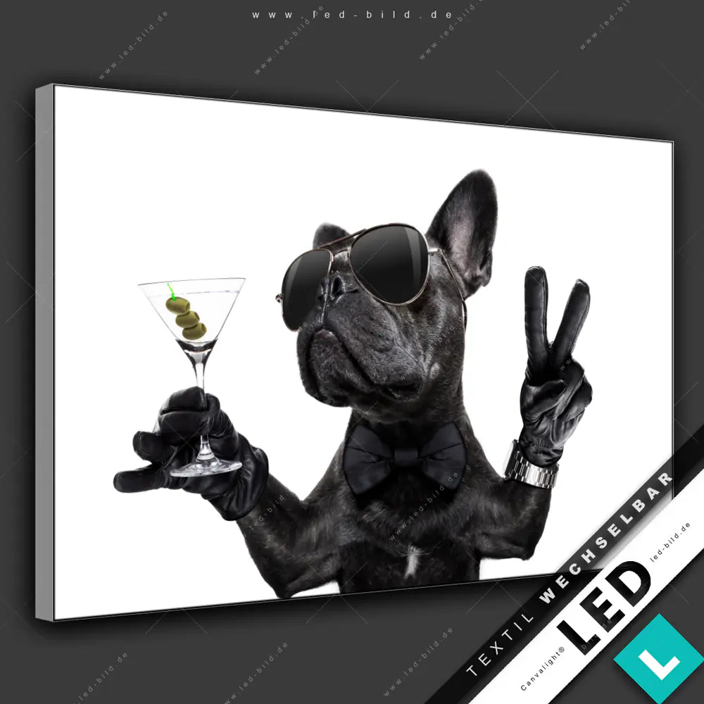 Canvalight® LED-Bild | Bulldogge mit Martini | Querformat