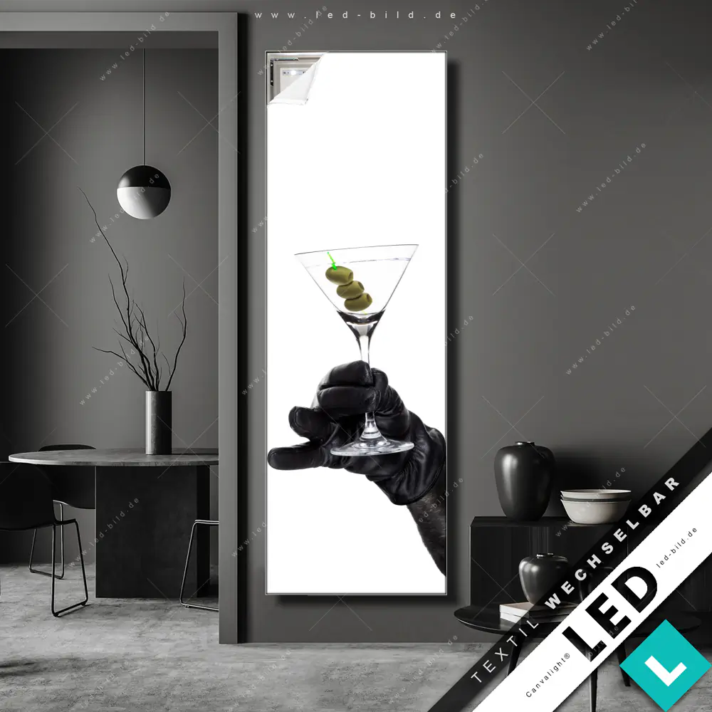 Canvalight® LED-Bild | Bulldogge mit Martini | Schmal