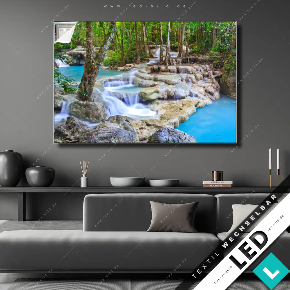 Wasserfall im Dschungel | Modern, individuell, brillant – dein LED Bild nach Maß