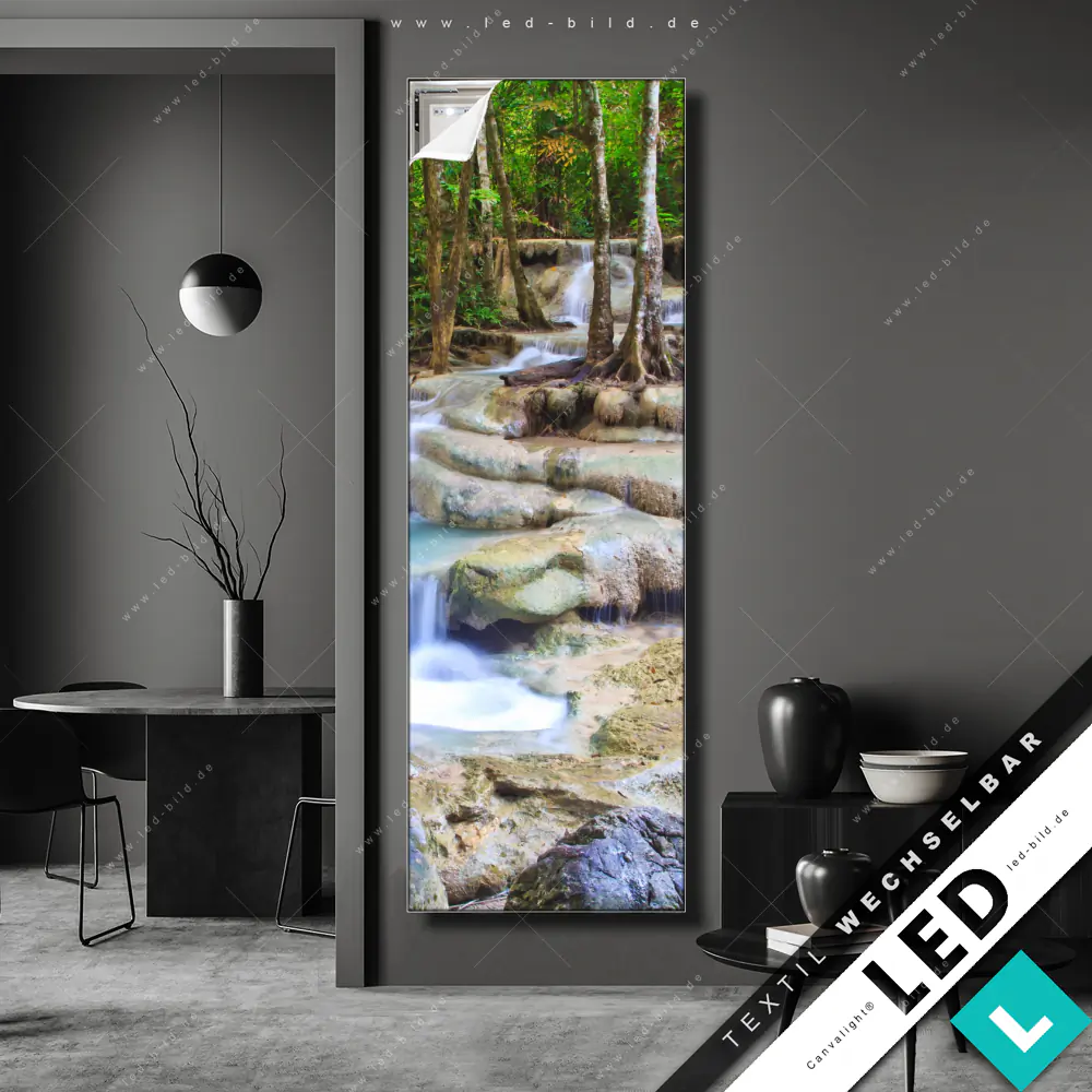 Canvalight® LED-Bild | Exotischer Wasserfall | Schmal