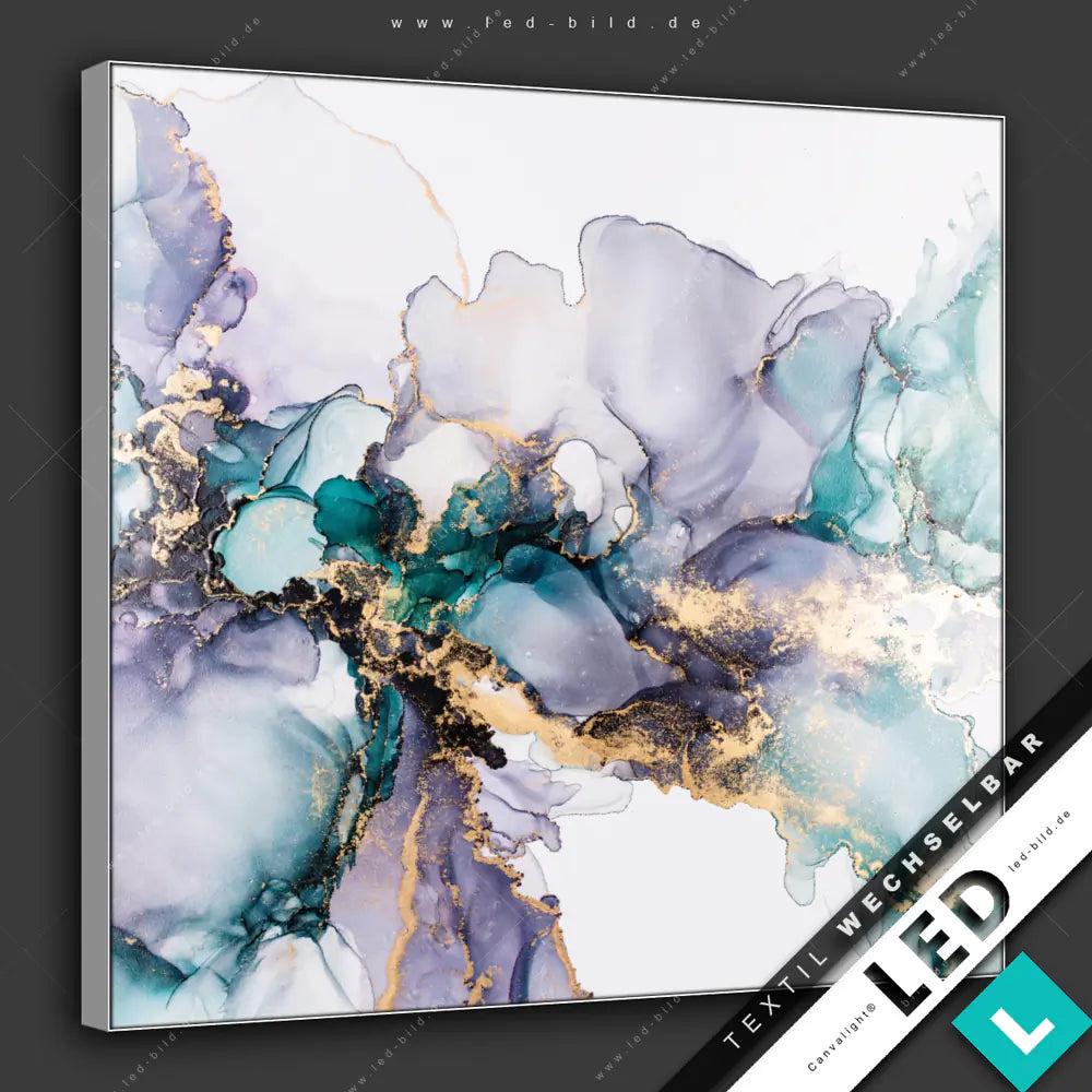 Canvalight® LED-Bild | Fluid Art Lila & Türkis | Quadrat