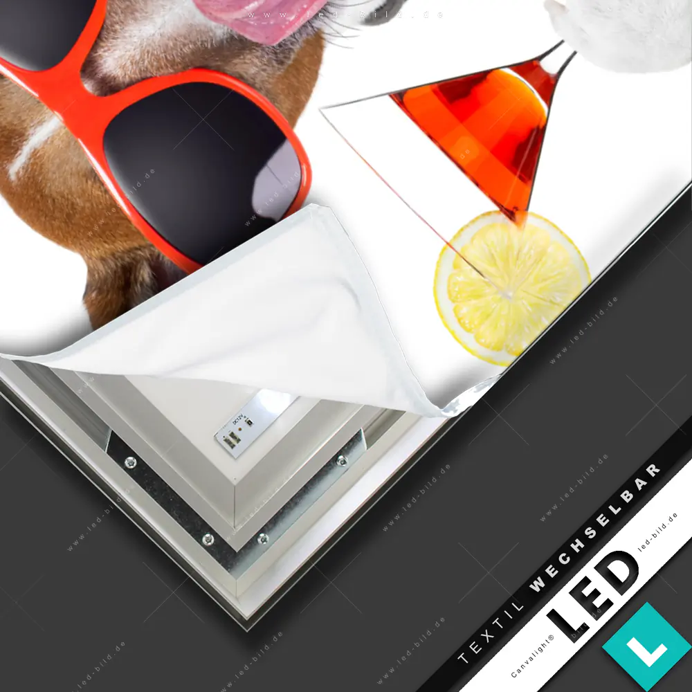LED Leuchtbild mit wechselbarem Textil-Druck