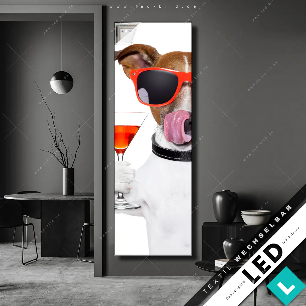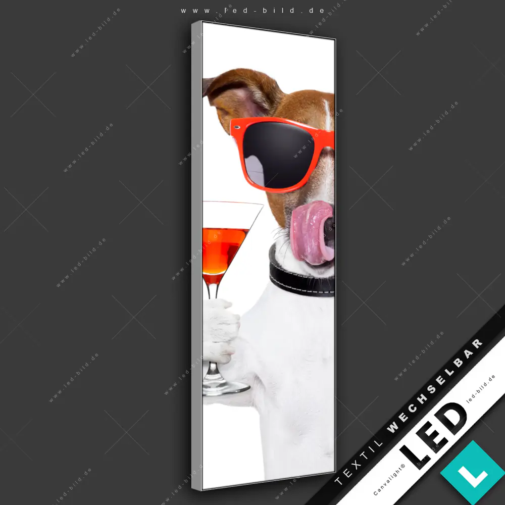 Canvalight® LED-Bild | Lustiger Hund mit Drink | Schmal