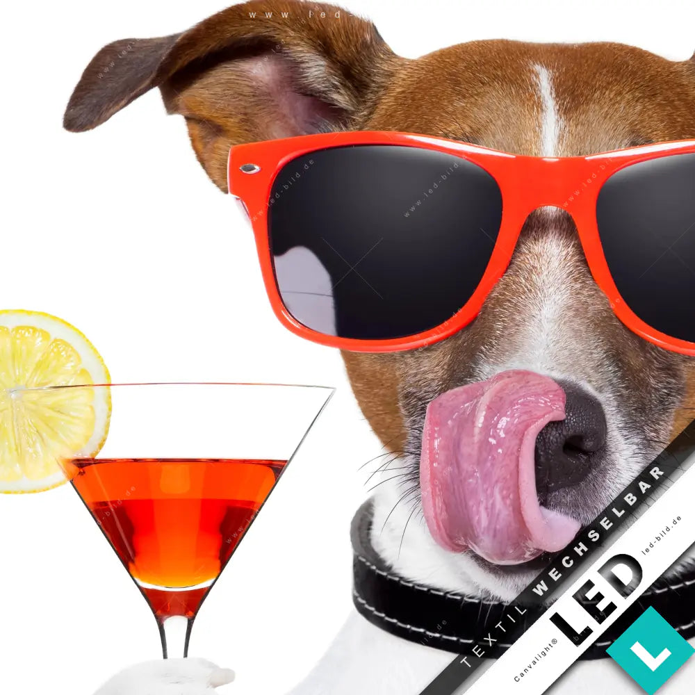 Party-Hund mit Cocktail | Modern, individuell, brillant – dein LED Bild nach Maß