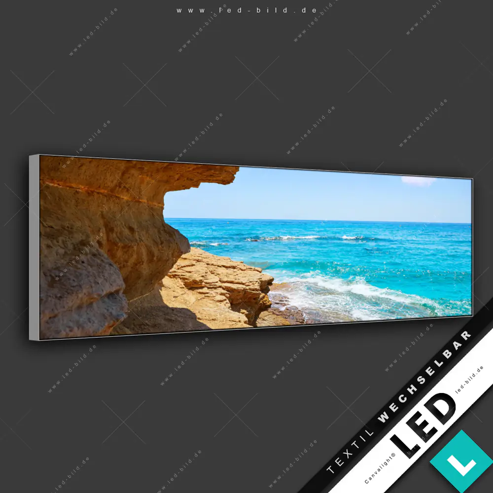 Felsenblick aufs Meer | Modern, individuell, brillant – dein LED Bild nach Maß