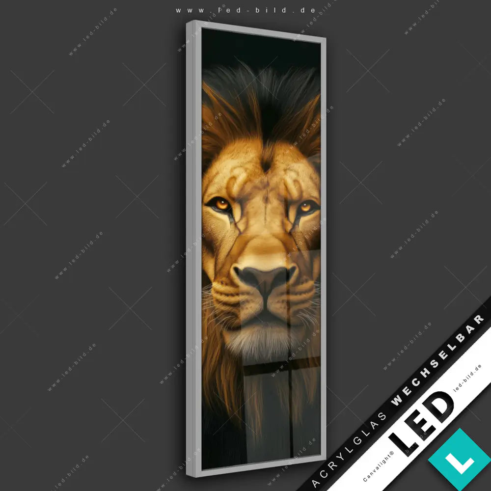 Canvalight® LED Glasbild | Goldener Löwe | Schmal