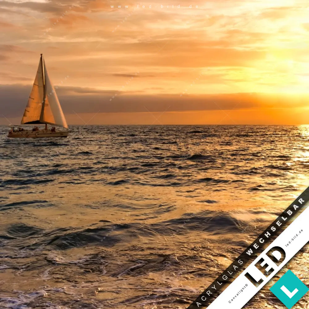 Mit dem innovativen LED-Leuchtbild Segeln auf offener See aus der Kategorie Landschaften, Strand - Meer bringst du stilvolles Design im Natürlich - Realistisch, Modern Art Stil an deine Wand – perfekt für Arzt - Praxis, Büro - Kanzlei, Wohnzimmer - Schlafzimmer! Das brillante Motiv in den Farben Orange, Beige, Blau gedruckt hinter auswechselbarem Acrylglas, kombiniert mit einem hochwertigen Aluminiumrahmen, sorgt für leuchtende Akzente, die sich sehen lassen können.