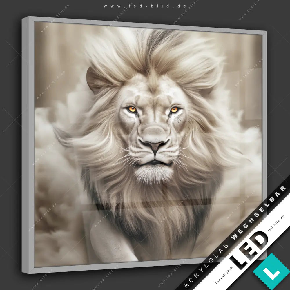 Löwenkopf mit hellem Fell | Brillante LED-Ausleuchtung, edles Design & flexible Acrylglas-Motive