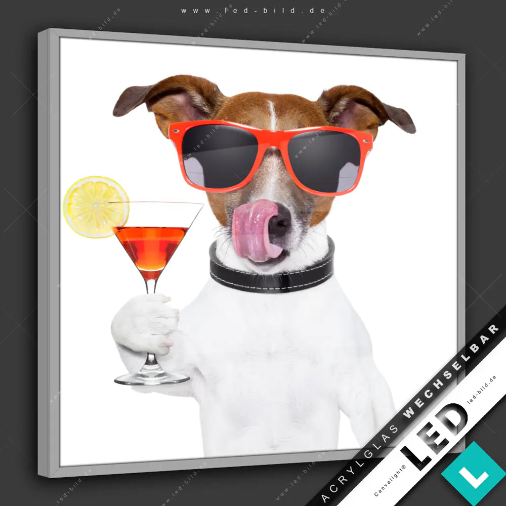 Cocktailzeit mit Party-Dog | Brillante LED-Ausleuchtung, edles Design & flexible Acrylglas-Motive