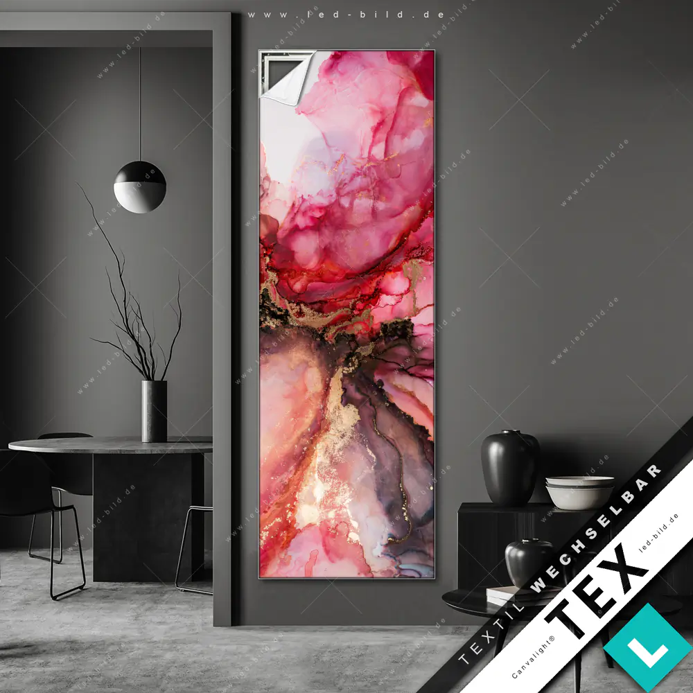 Canvalight® Textilrahmen | Fluid Art Rot & Braun | Schmal