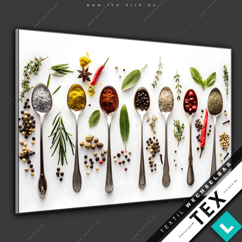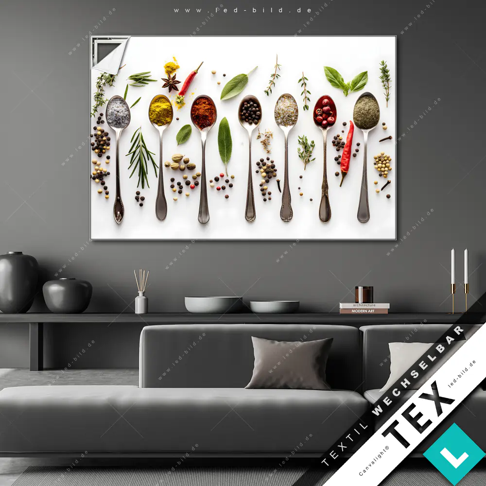 Küchenkunst: Gewürze | Textildruck im maßgefertigtem Aluminium-Spannrahmen – moderne Bilder mit Rahmen für Zuhause & Gewerbe