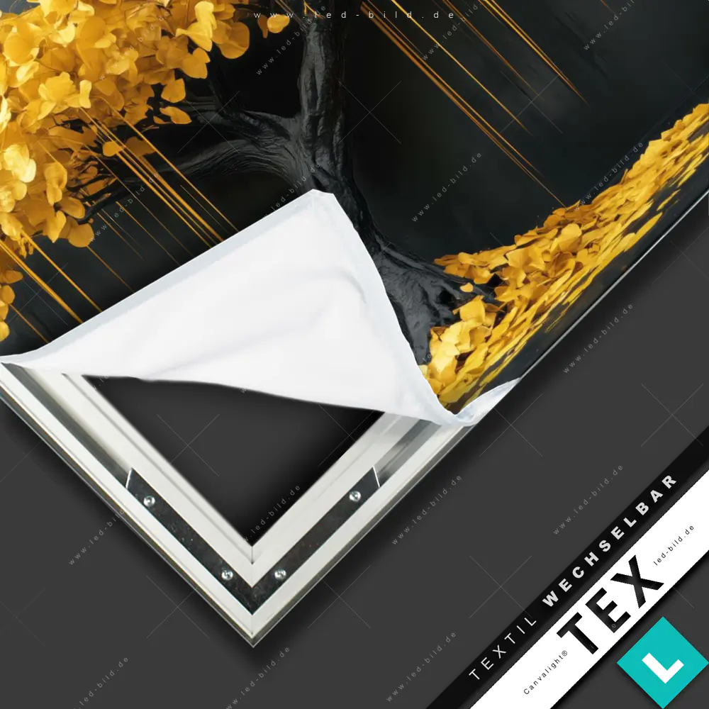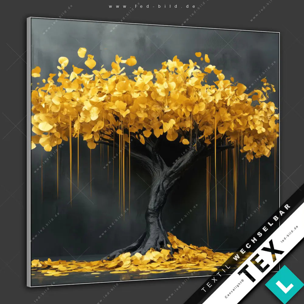 Canvalight® Textilrahmen | Goldener Lebensbaum | Quadrat