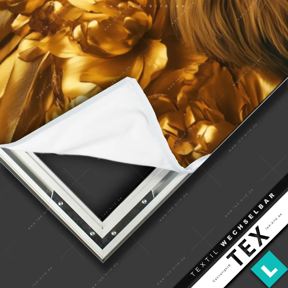 Du hast genug von öden Wänden? Dann ist es höchste Zeit für ein Upgrade mit unserem Canvalight® TEX Wechselbild Goldener Löwe im Panorama-Format! Mit diesem stylischen Wandbild mit Wechselrahmen-System wird deine Wohnung eine völlig neue Dimension erreichen!