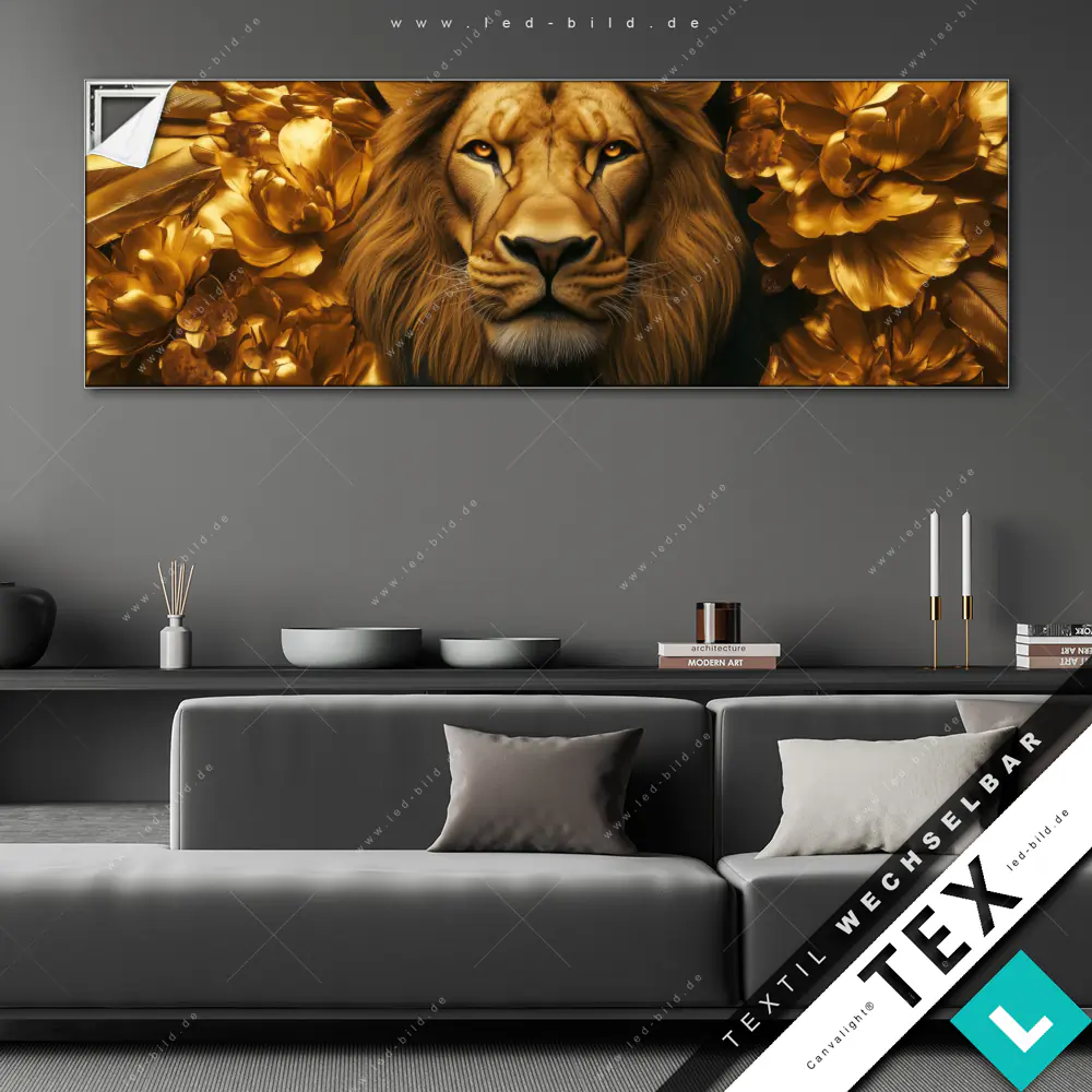 Canvalight® Textilrahmen | Goldener Löwe | Panorama