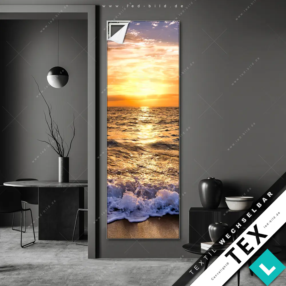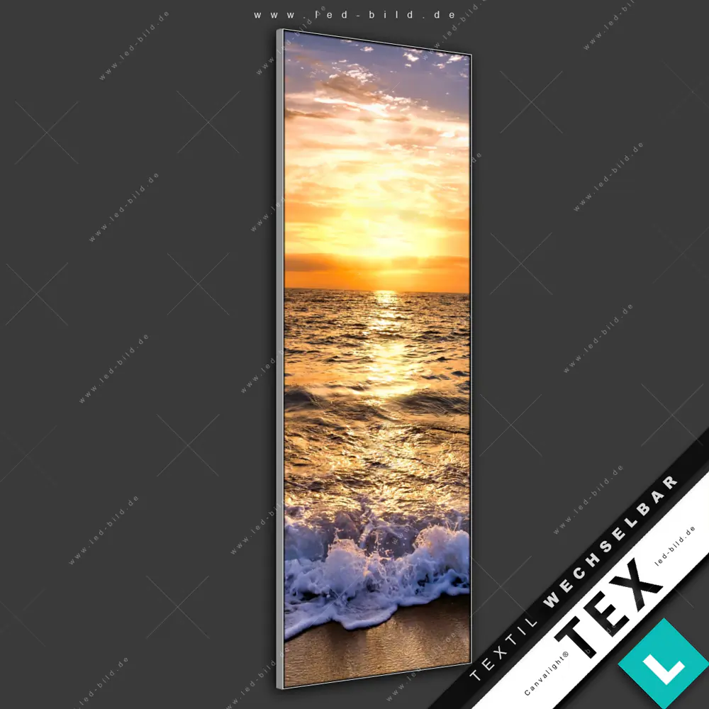 Canvalight® Textilrahmen | Goldenes Licht am Meer | Schmal