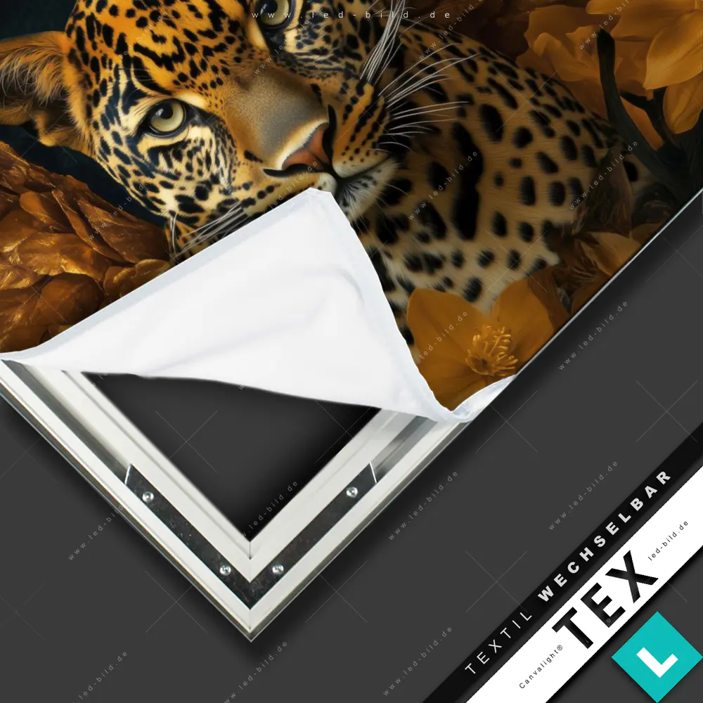 Canvalight® Textilrahmen | Goldflügel-Leopard | Quadrat