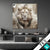 Weiße Raubkatze | Textildruck im maßgefertigtem Aluminium-Spannrahmen – moderne Bilder mit Rahmen für Zuhause & Gewerbe