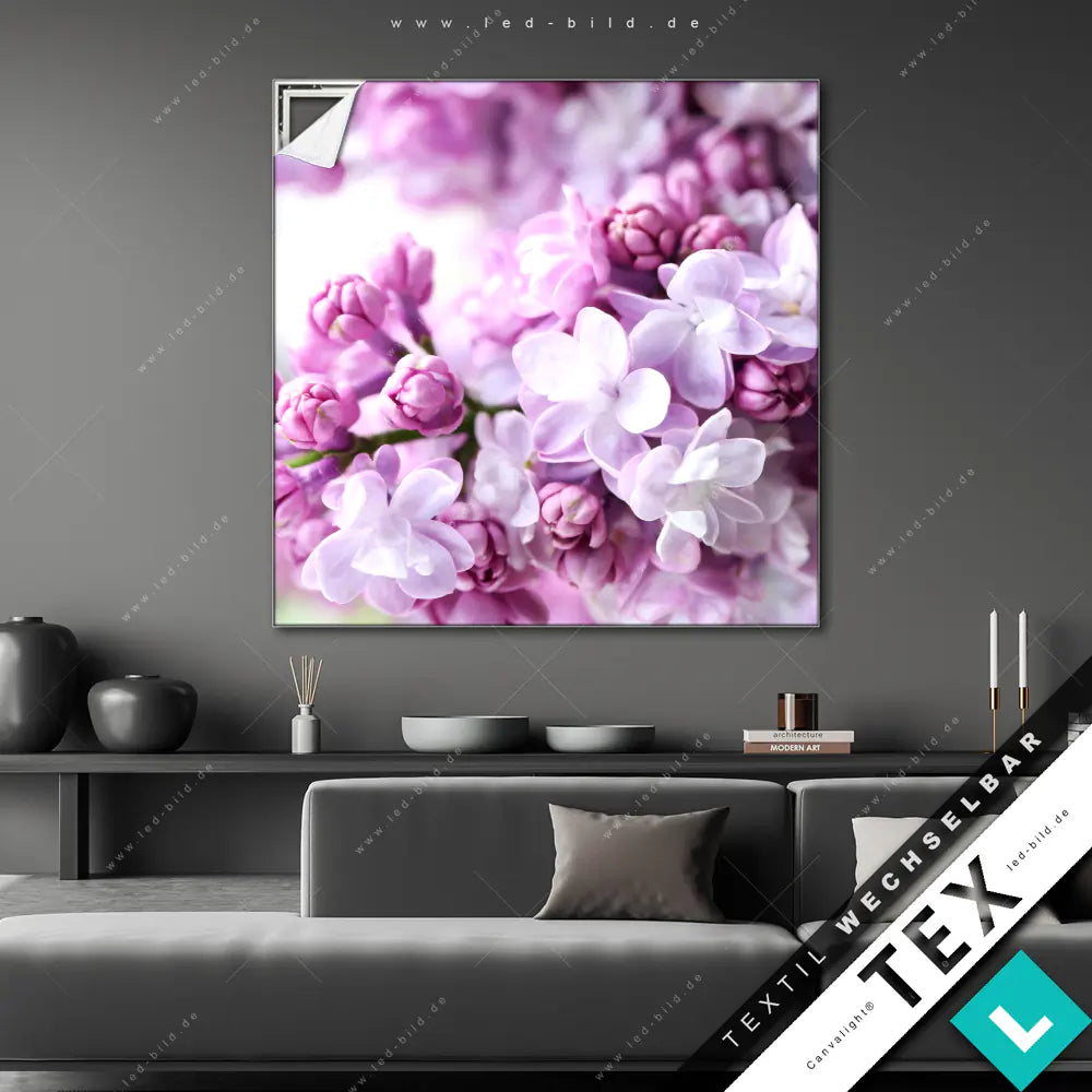Canvalight® Textilrahmen | Lila Fliederblüten | Quadrat