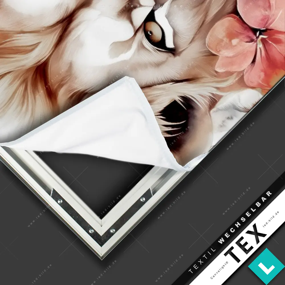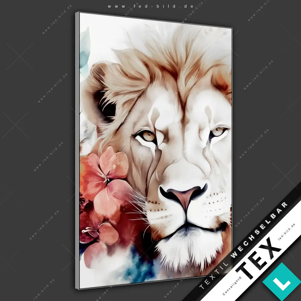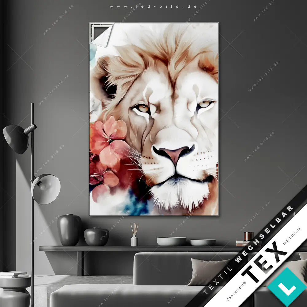Canvalight® Textilrahmen | Löwe mit Blumen | Hochformat
