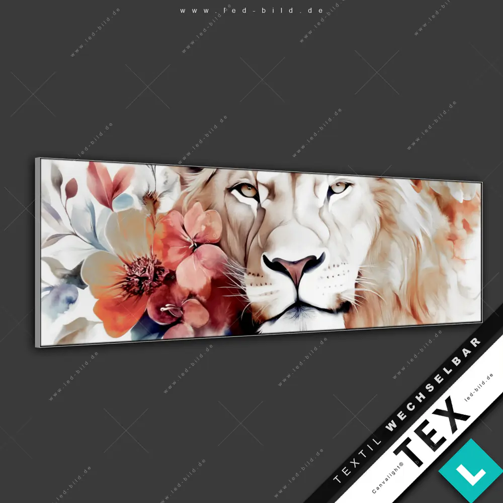 Canvalight® Textilrahmen | Löwe mit Blumen | Panorama