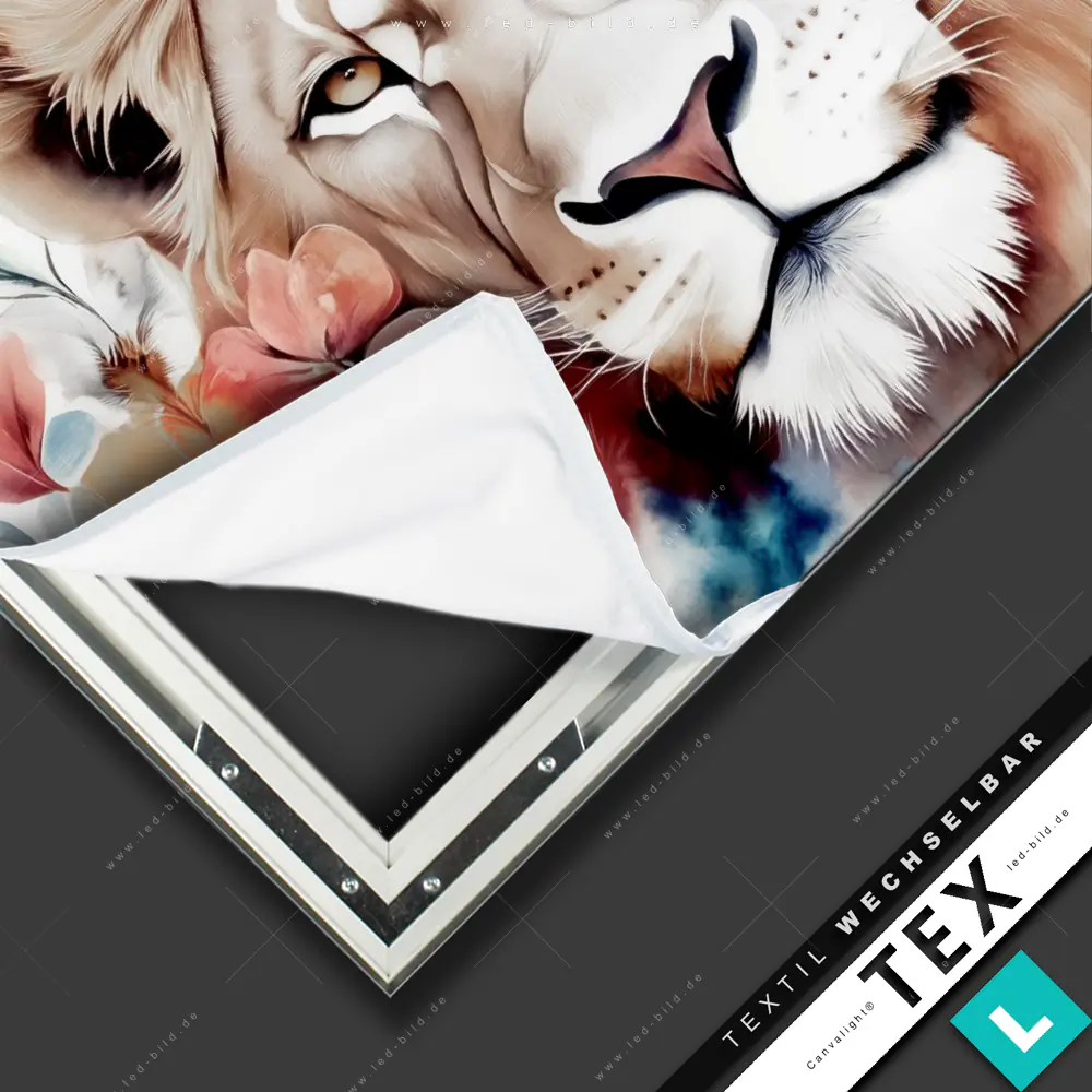 Canvalight® Textilrahmen | Löwe mit Blumen | Quadrat