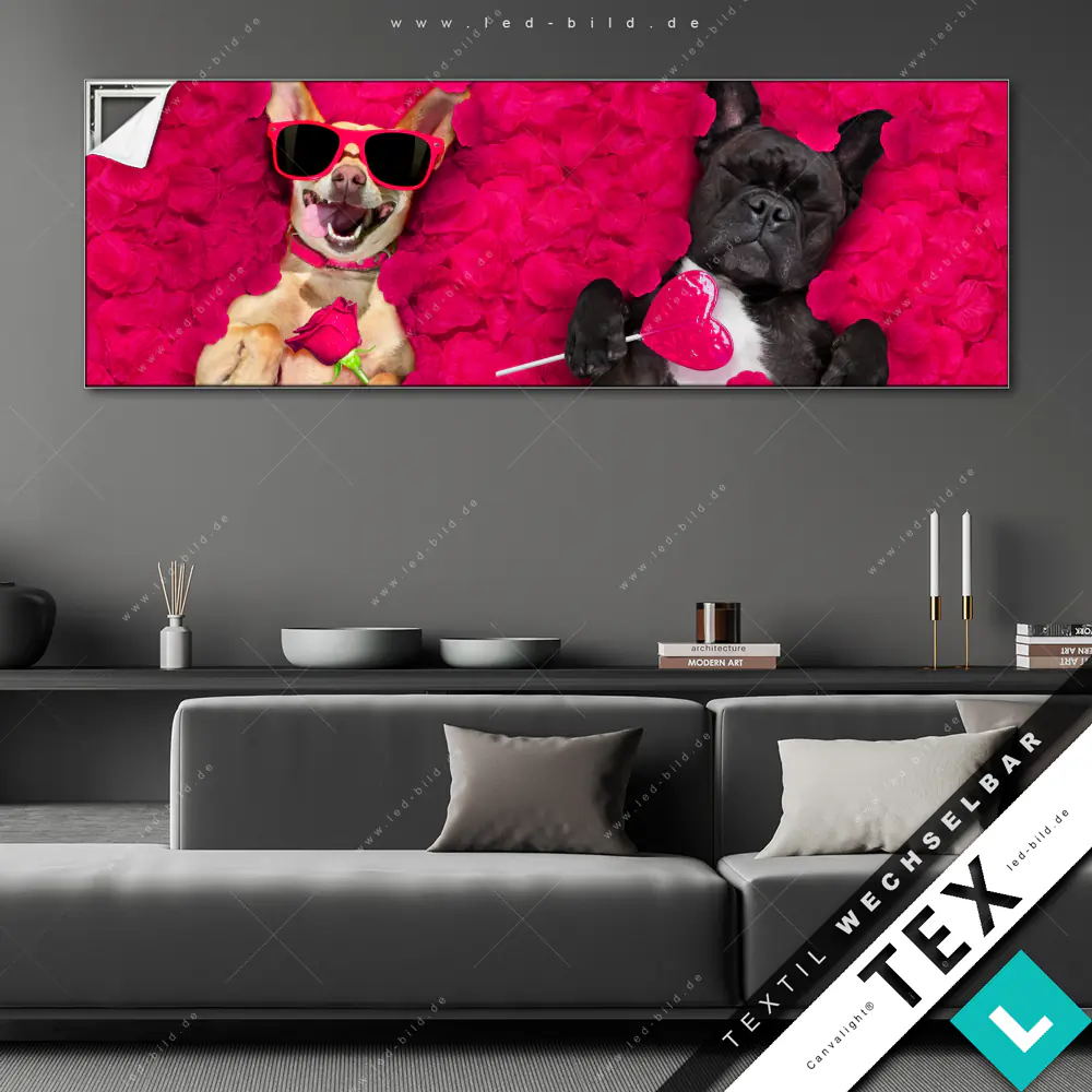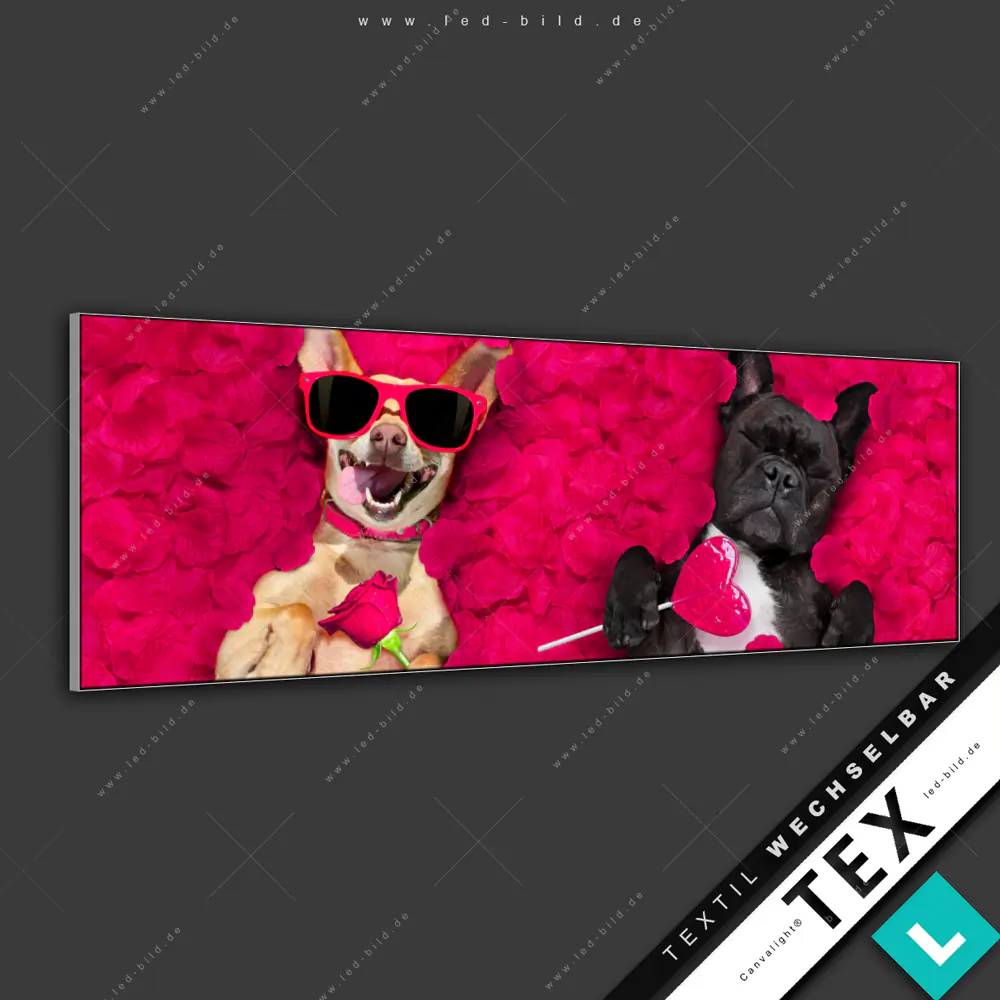 Canvalight® Textilrahmen | Romantik mit süßen Hunden | Panorama