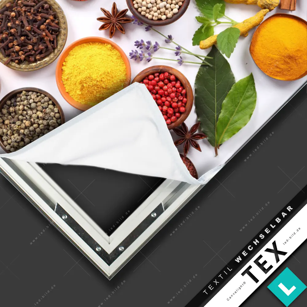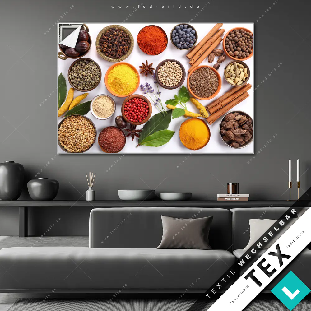 Also worauf wartest du noch? Lass die Magie los und verwandle deine vier Wände in ein kunterbuntes Kunstspektakel! Bestelle jetzt unser Canvalight® TEX Wechselbild Natürliche Aromen - Gewürze und zeig der Langeweile, wer hier das Zepter schwingt!