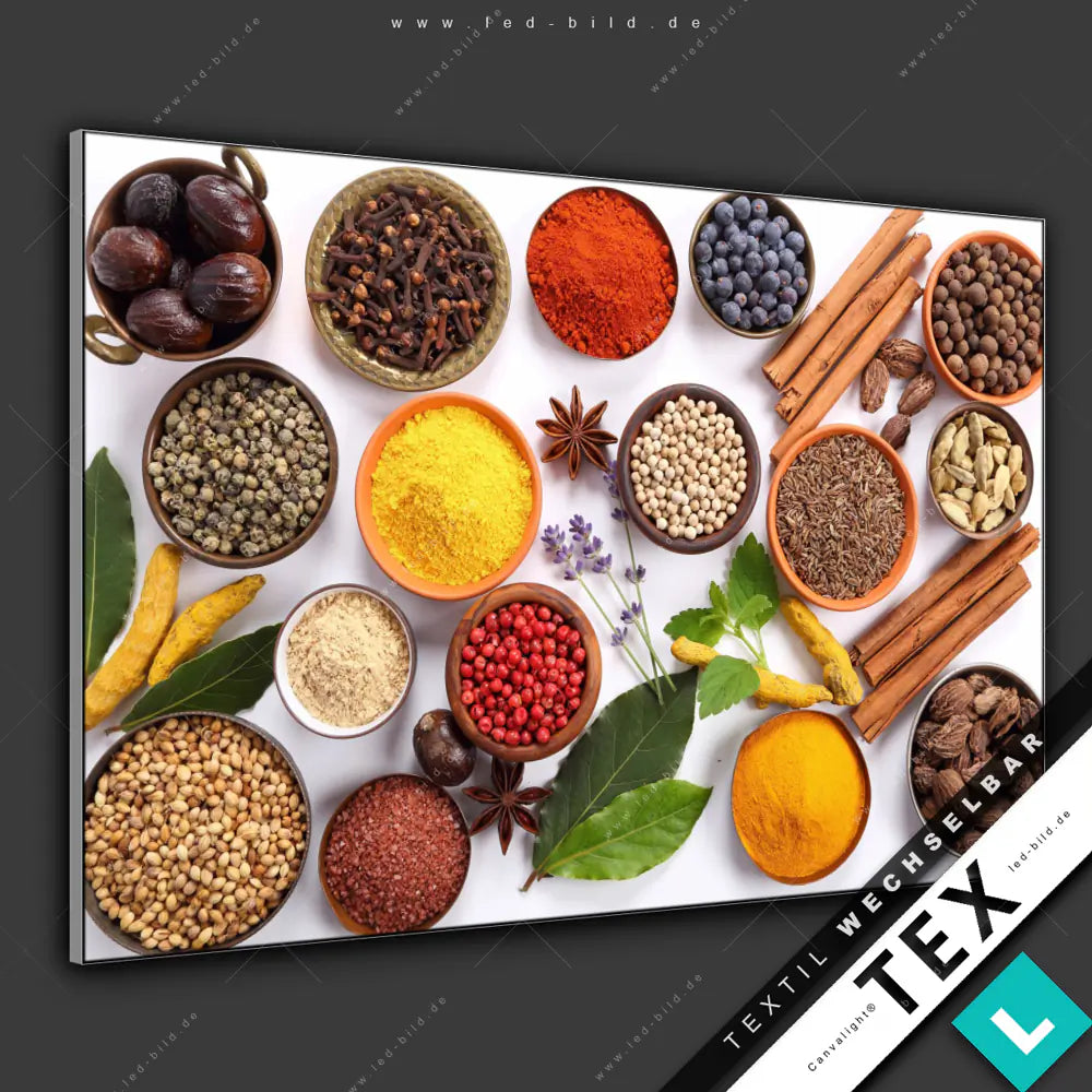 Gewürze in der Küche | Textildruck im maßgefertigtem Aluminium-Spannrahmen – moderne Bilder mit Rahmen für Zuhause & Gewerbe