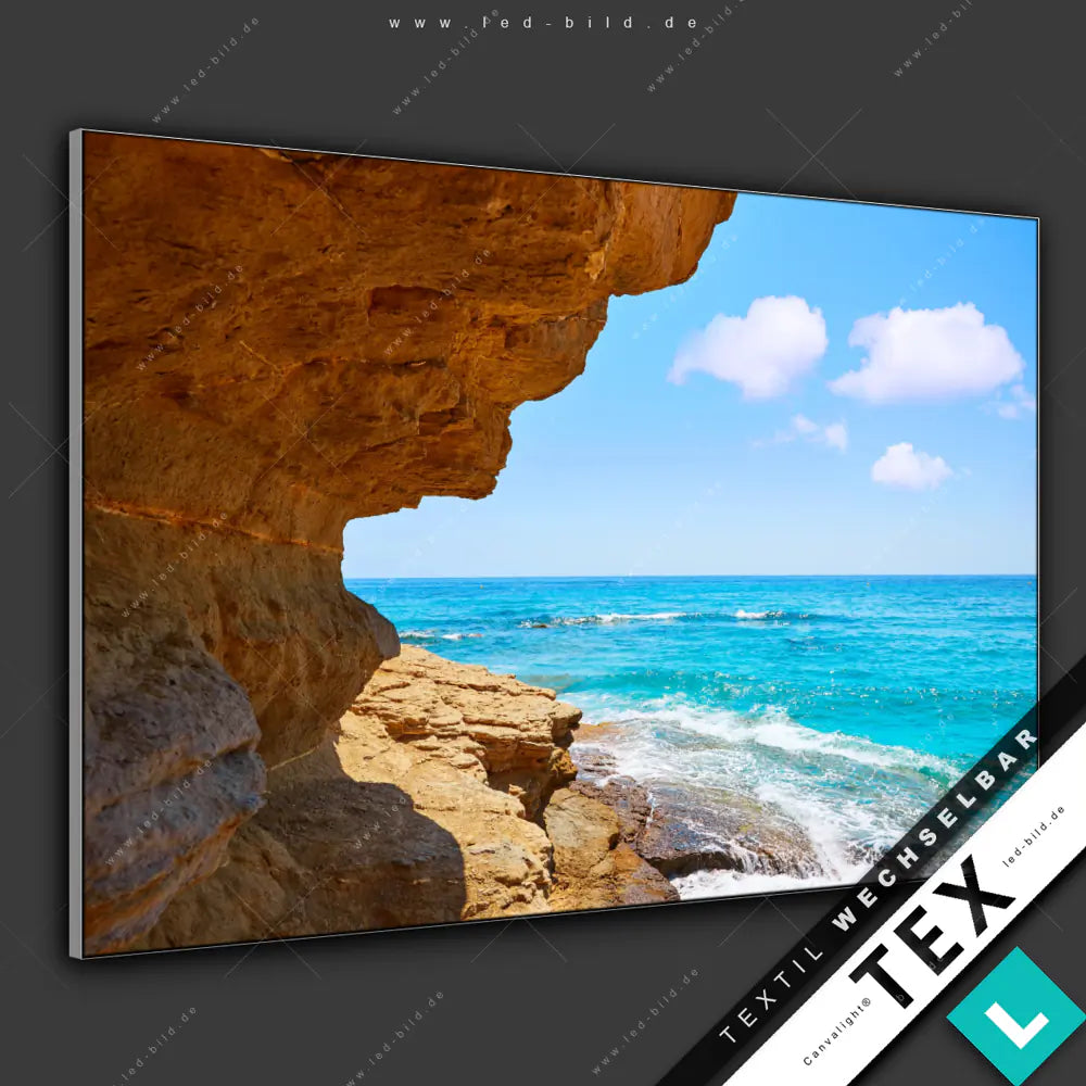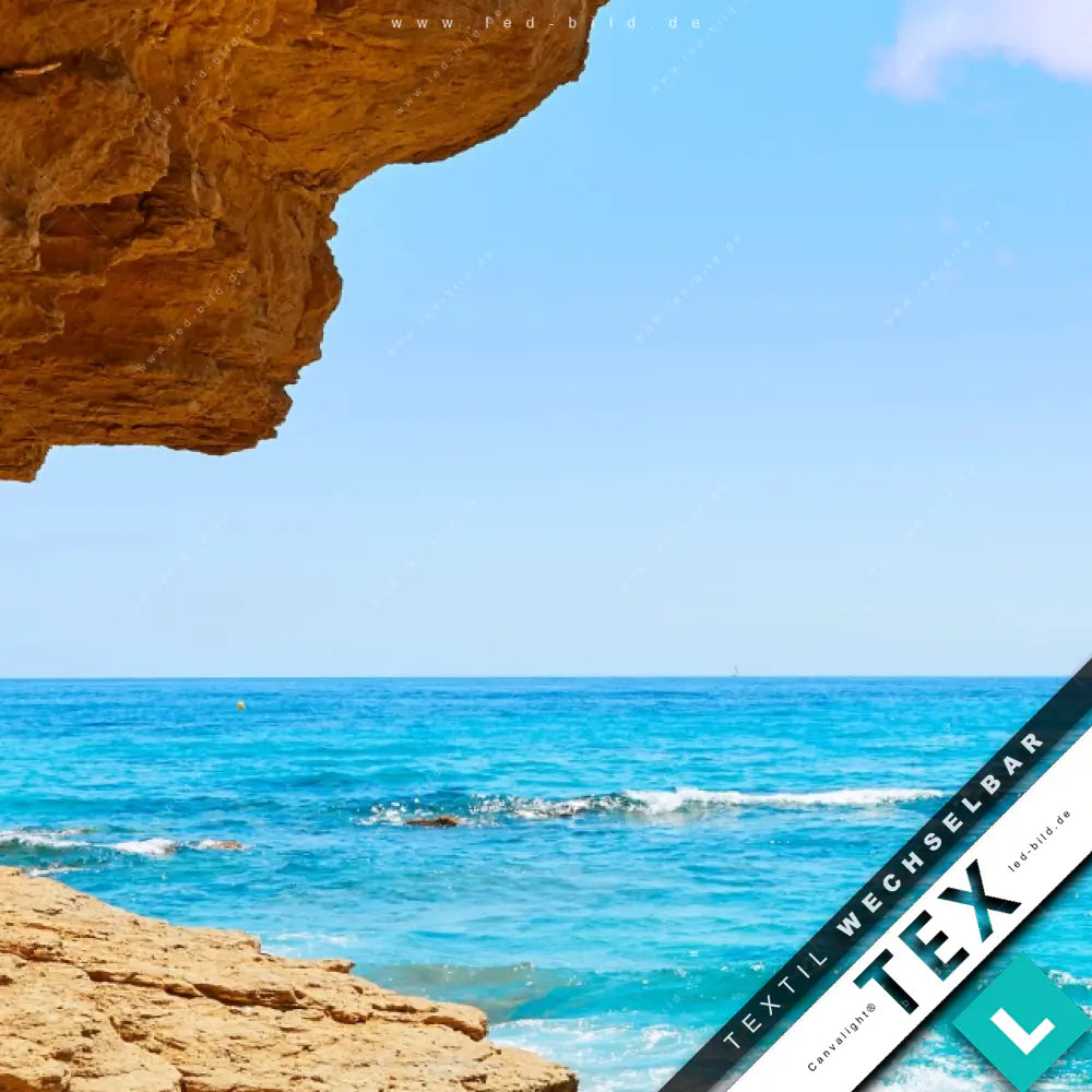 Felsenblick aufs Meer | Textildruck im maßgefertigtem Aluminium-Spannrahmen – moderne Bilder mit Rahmen für Zuhause & Gewerbe