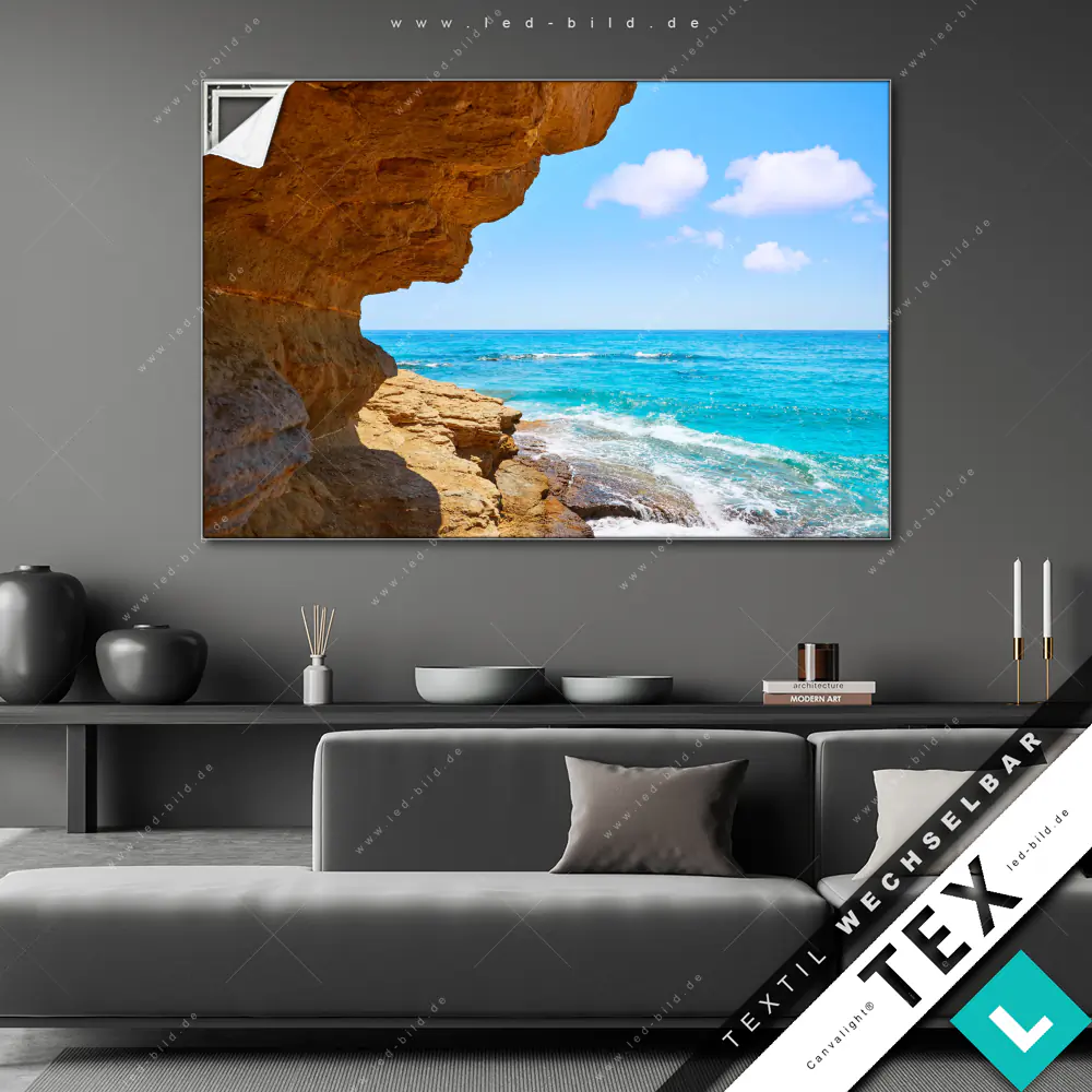 Also worauf wartest du noch? Lass die Magie los und verwandle deine vier Wände in ein kunterbuntes Kunstspektakel! Bestelle jetzt unser Canvalight® TEX Wechselbild Naturküste mit Felsformation und zeig der Langeweile, wer hier das Zepter schwingt!