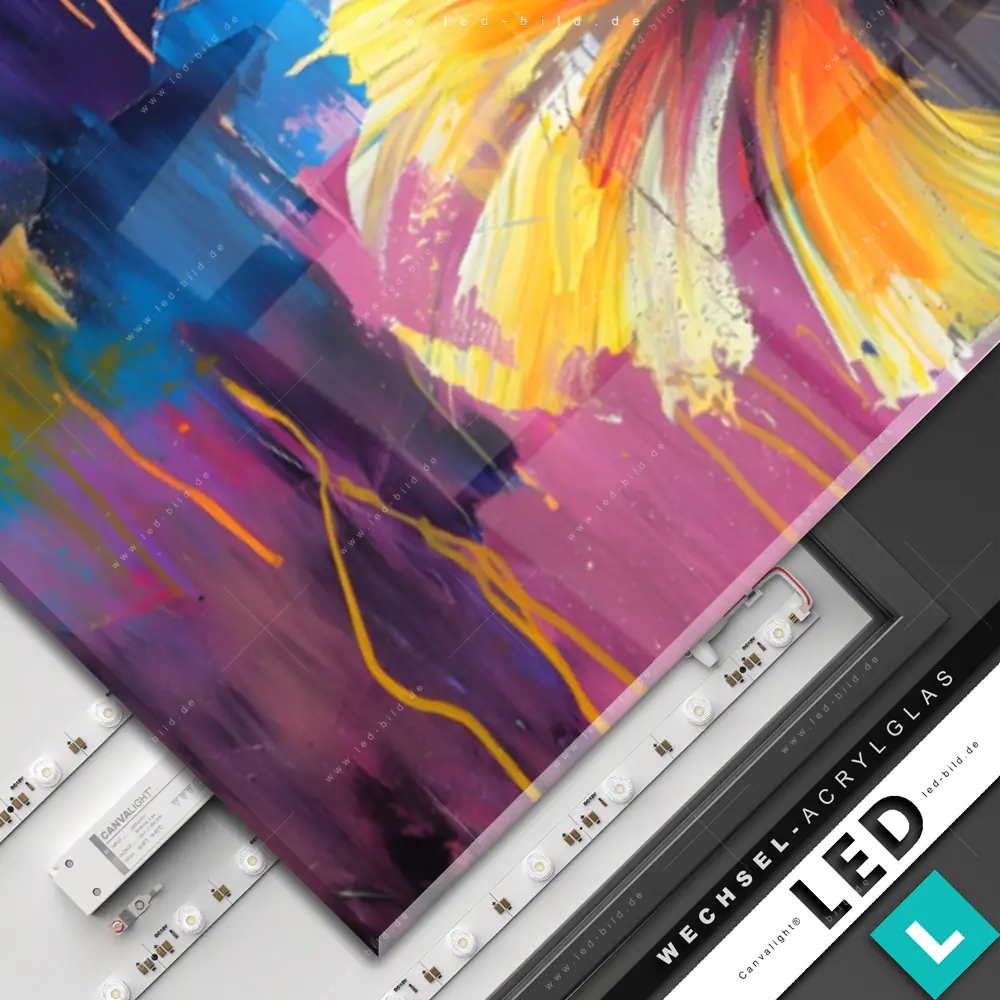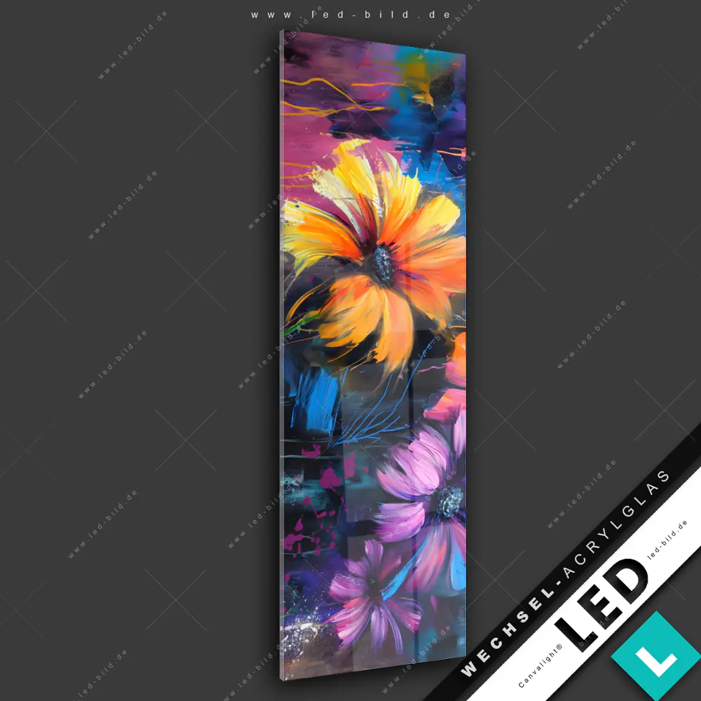 Canvalight® Wechsel-Acrylglas | Abstrakte Blumenpracht | Schmal