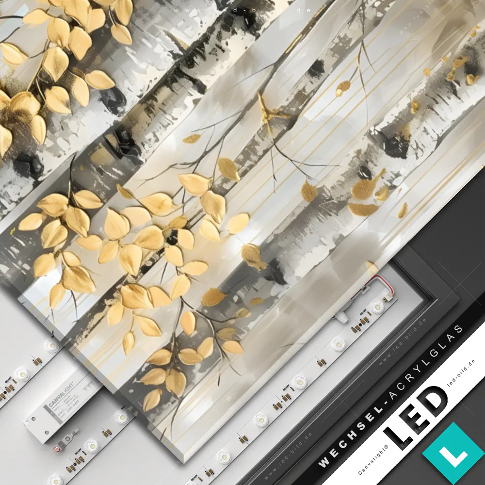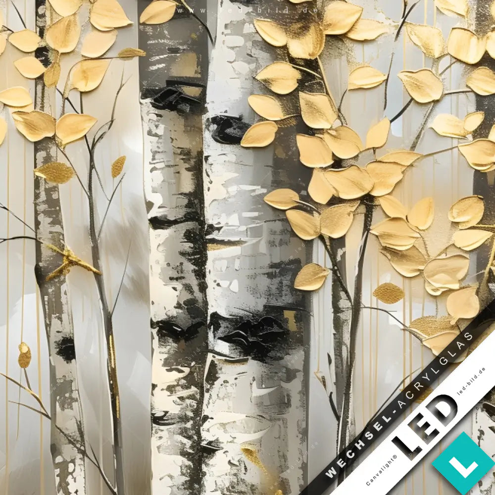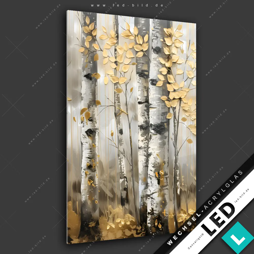 Canvalight® Wechsel-Acrylglas | Abstrakter Birkenwald | Hochformat