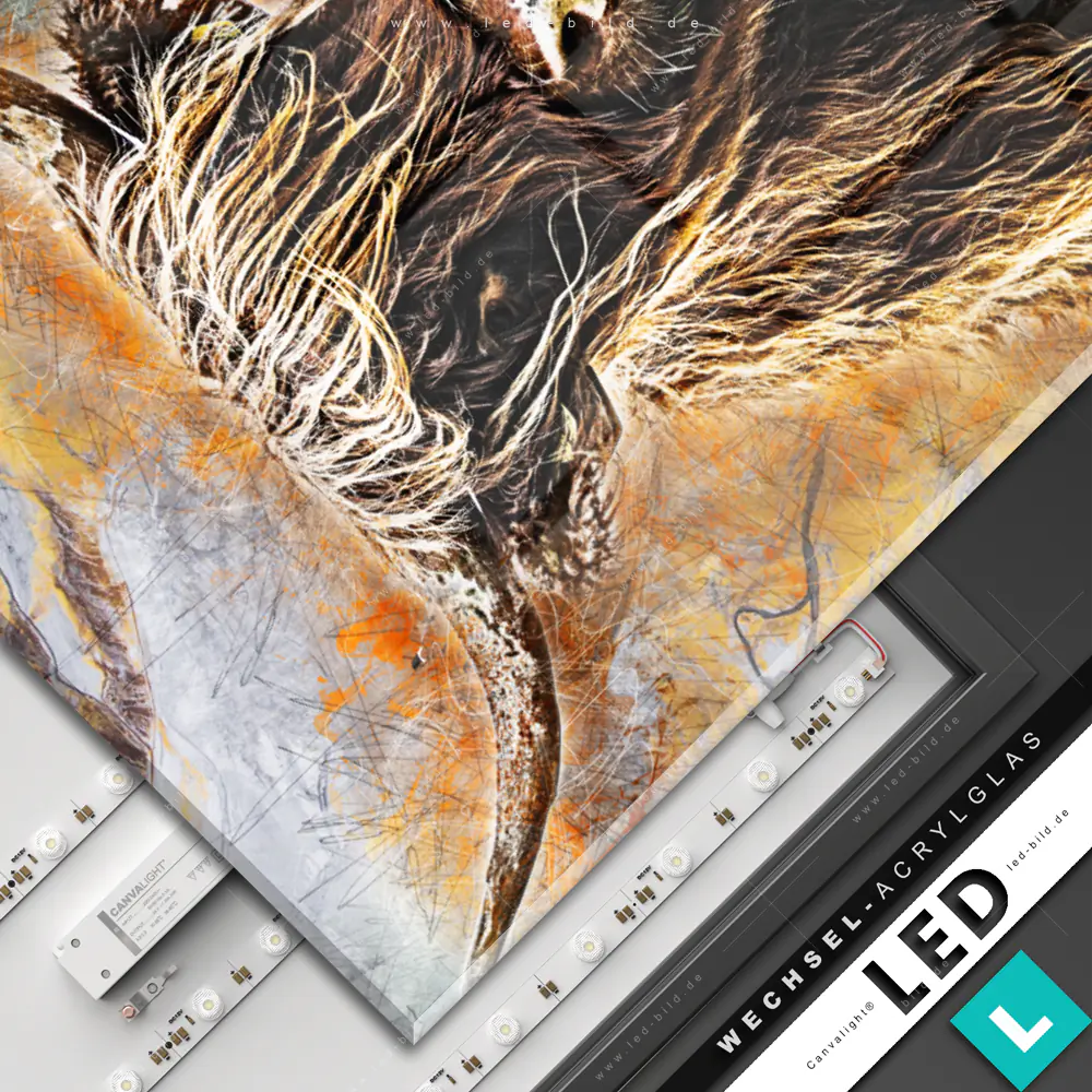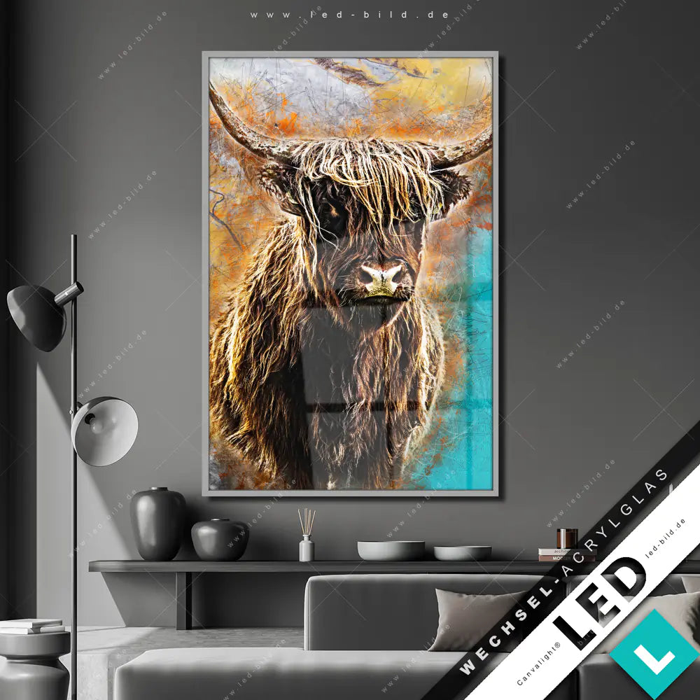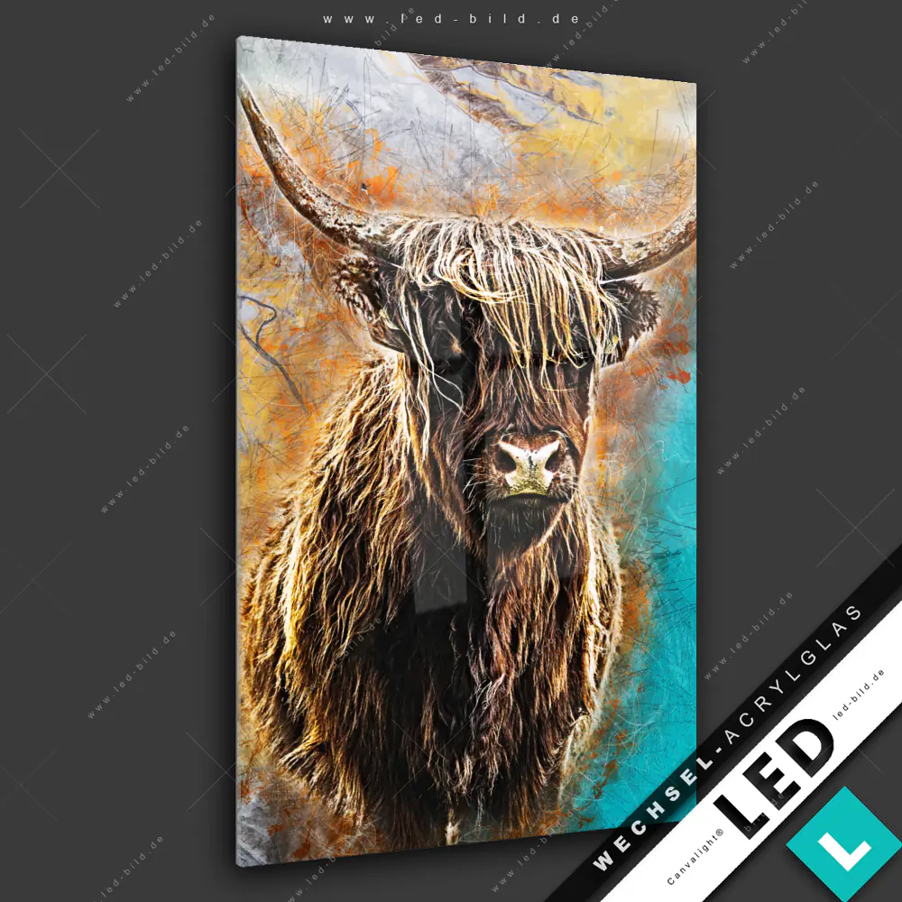 Canvalight® Wechsel-Acrylglas | Abstrakter Highlander | Hochformat