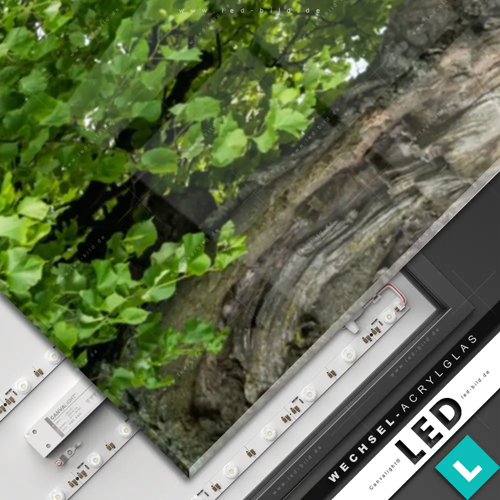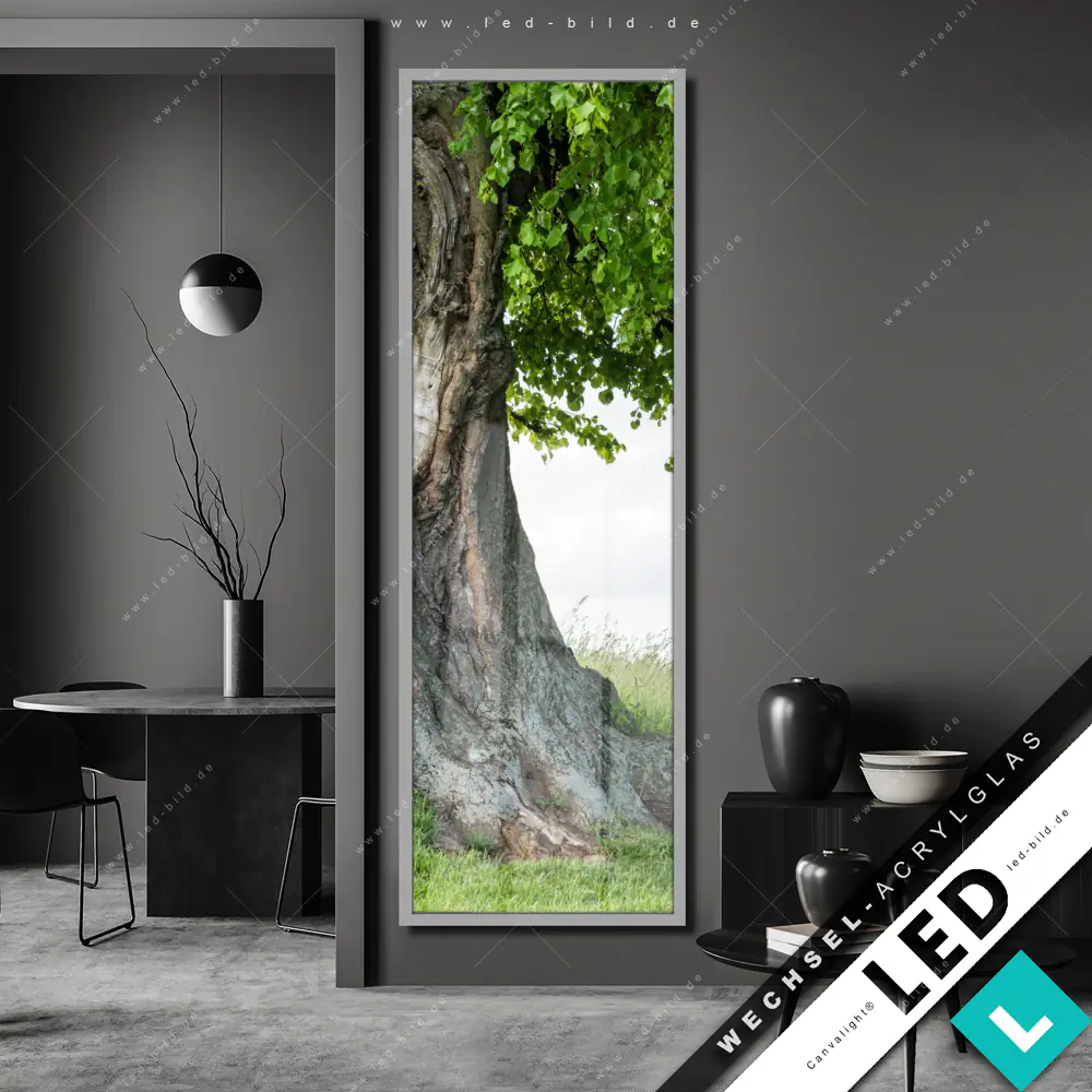 Canvalight® Wechsel-Acrylglas | Alte Linde auf Sommerwiese | Schmal