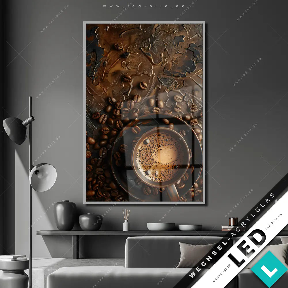 Canvalight® Wechsel-Acrylglas | Aromatischer Kaffeetraum | Hochformat