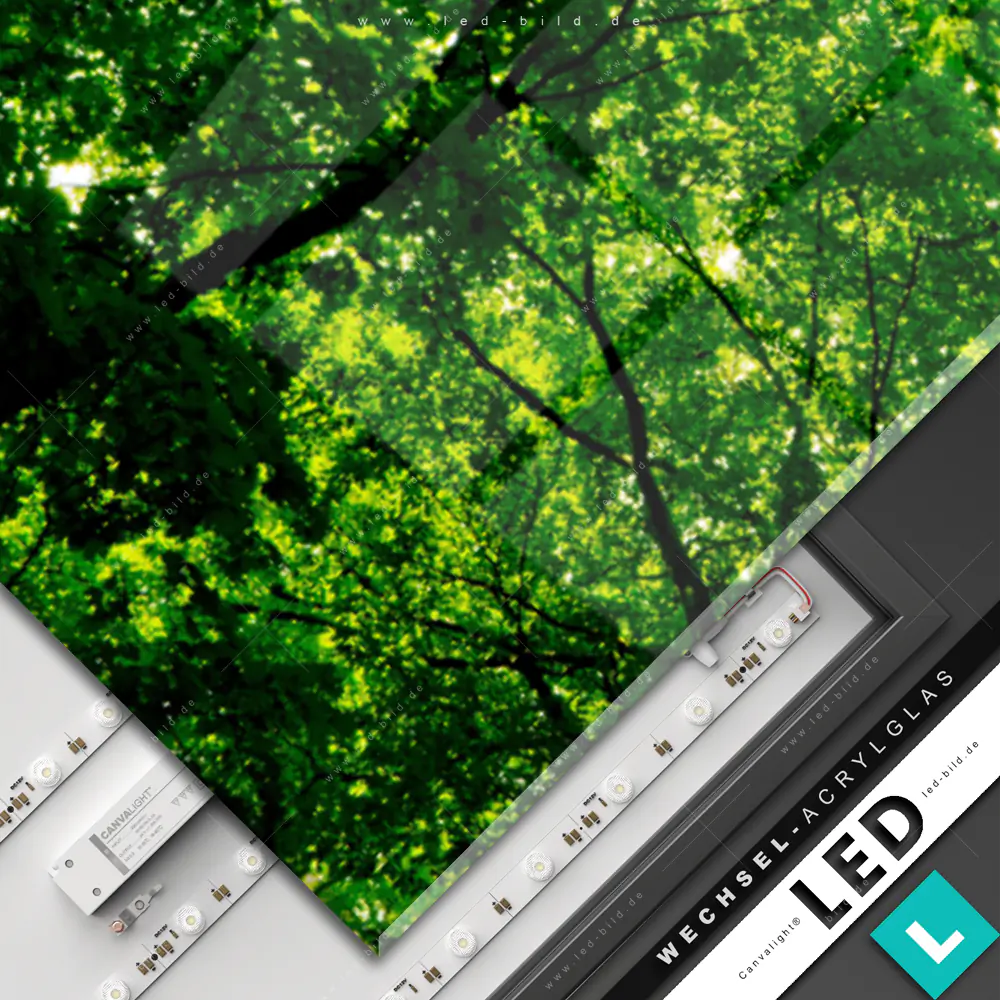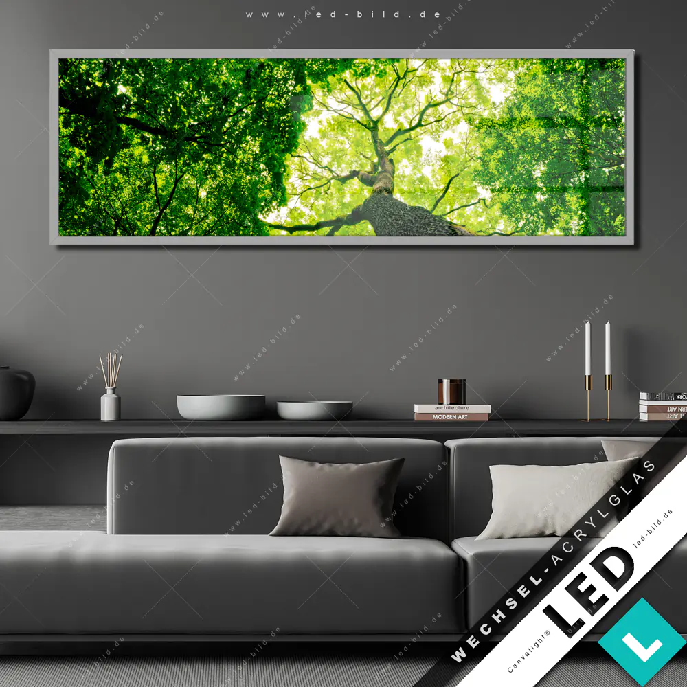 Canvalight® Wechsel-Acrylglas | Baum im Wald | Panorama