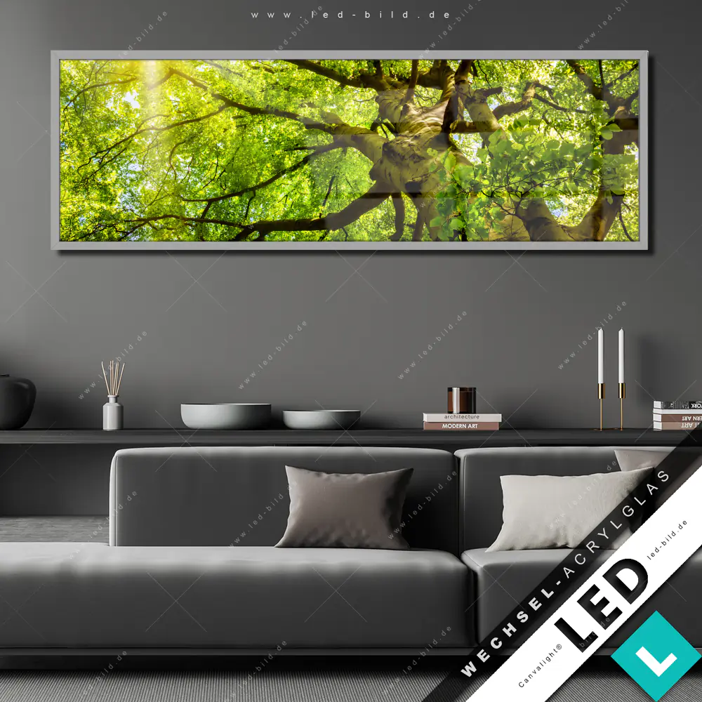 Canvalight® Wechsel-Acrylglas | Baumkrone einer Buche | Panorama