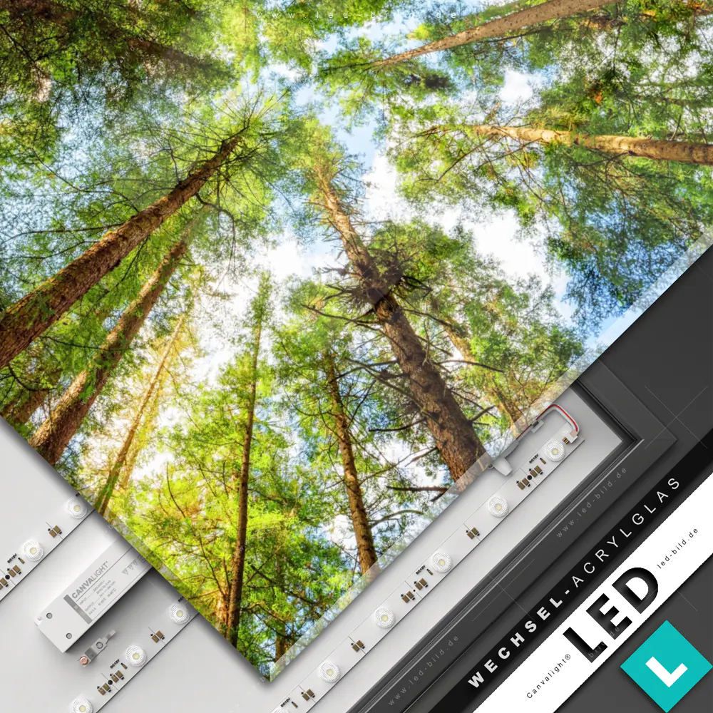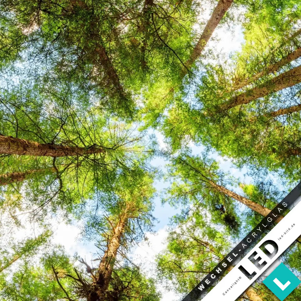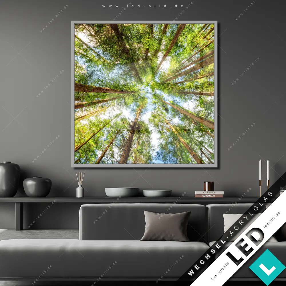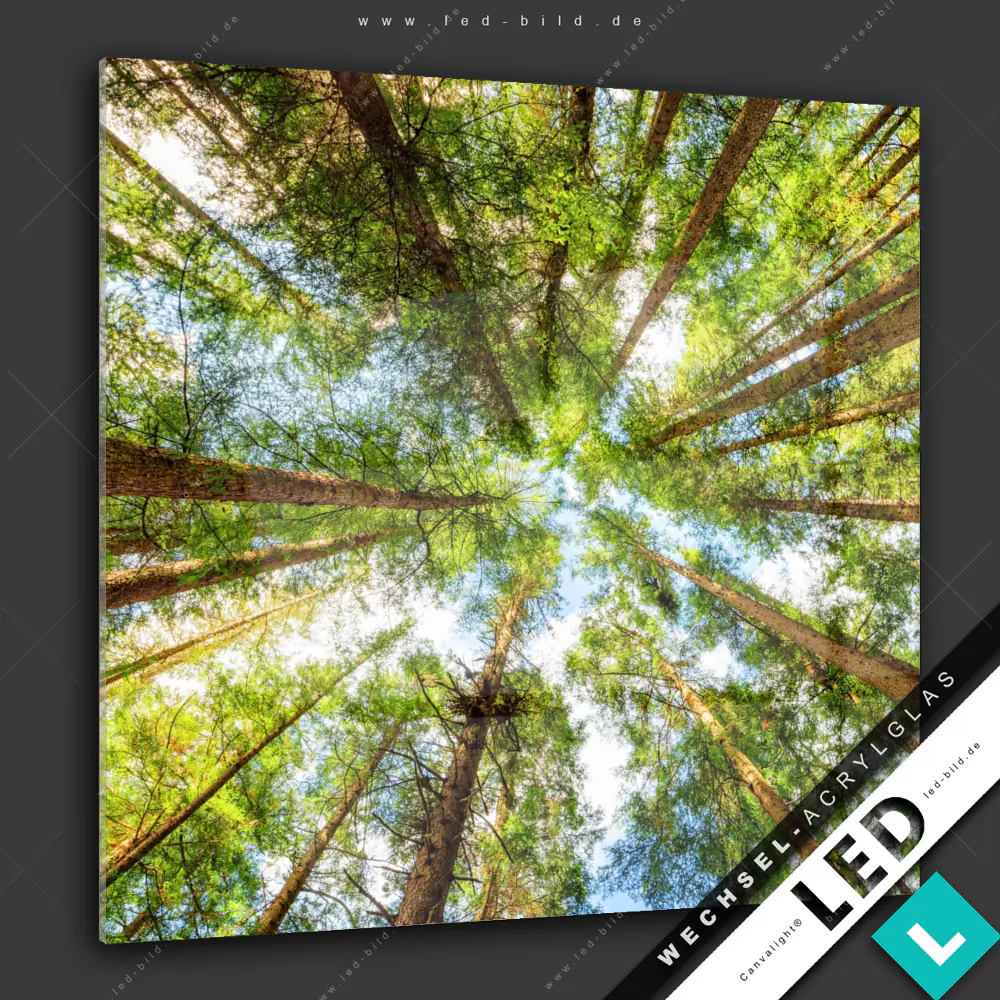 Canvalight® Wechsel-Acrylglas | Blick in Baumkronen | Quadrat