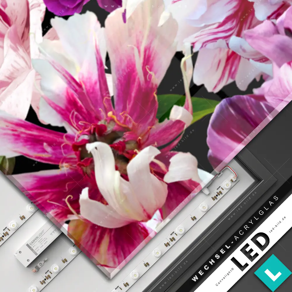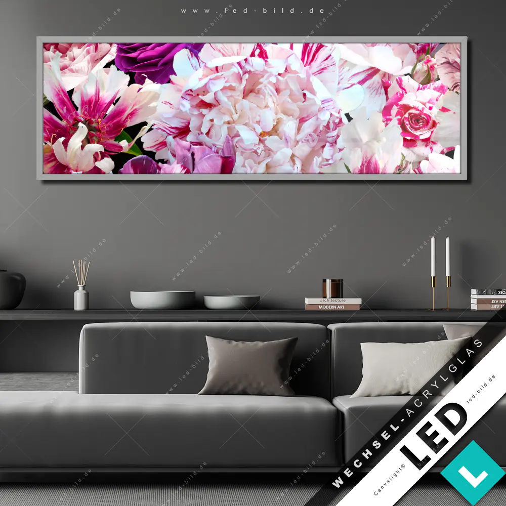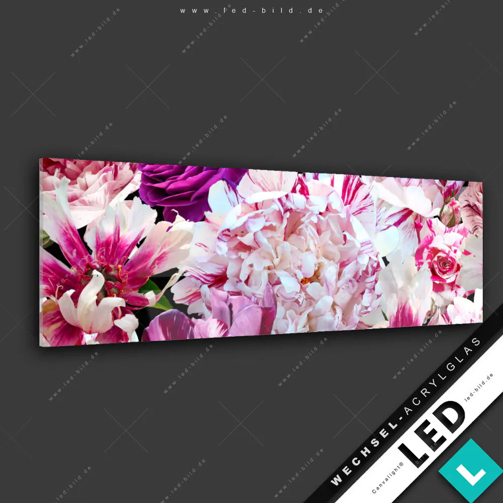 Canvalight® Wechsel-Acrylglas | Blühende Pfingstrosen | Panorama