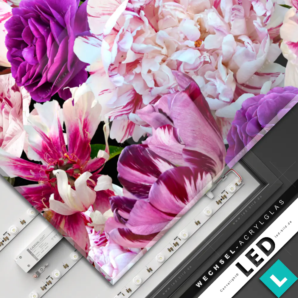 Canvalight® Wechsel-Acrylglas | Blühende Pfingstrosen | Querformat