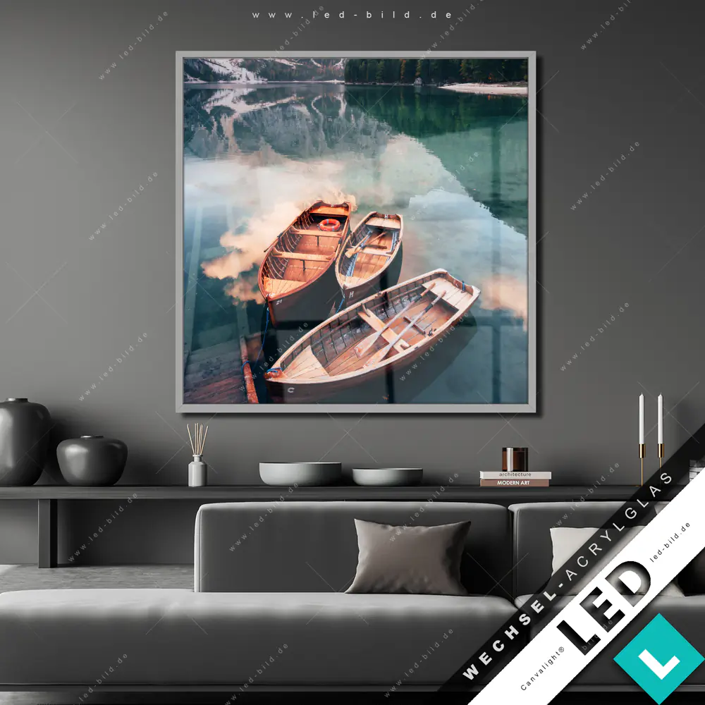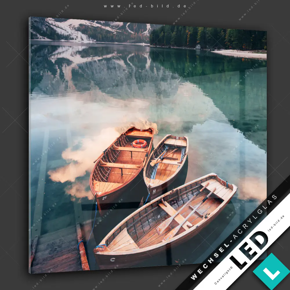 Canvalight® Wechsel-Acrylglas | Boote im Bergsee | Quadrat