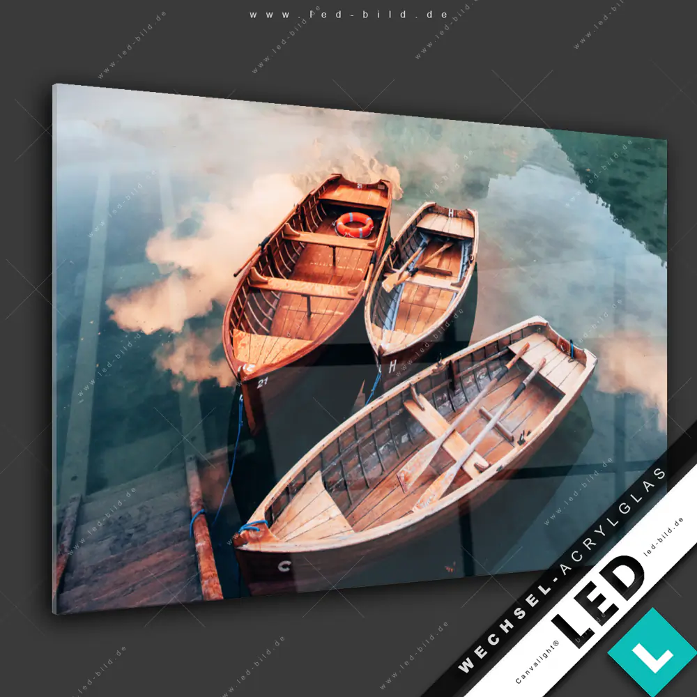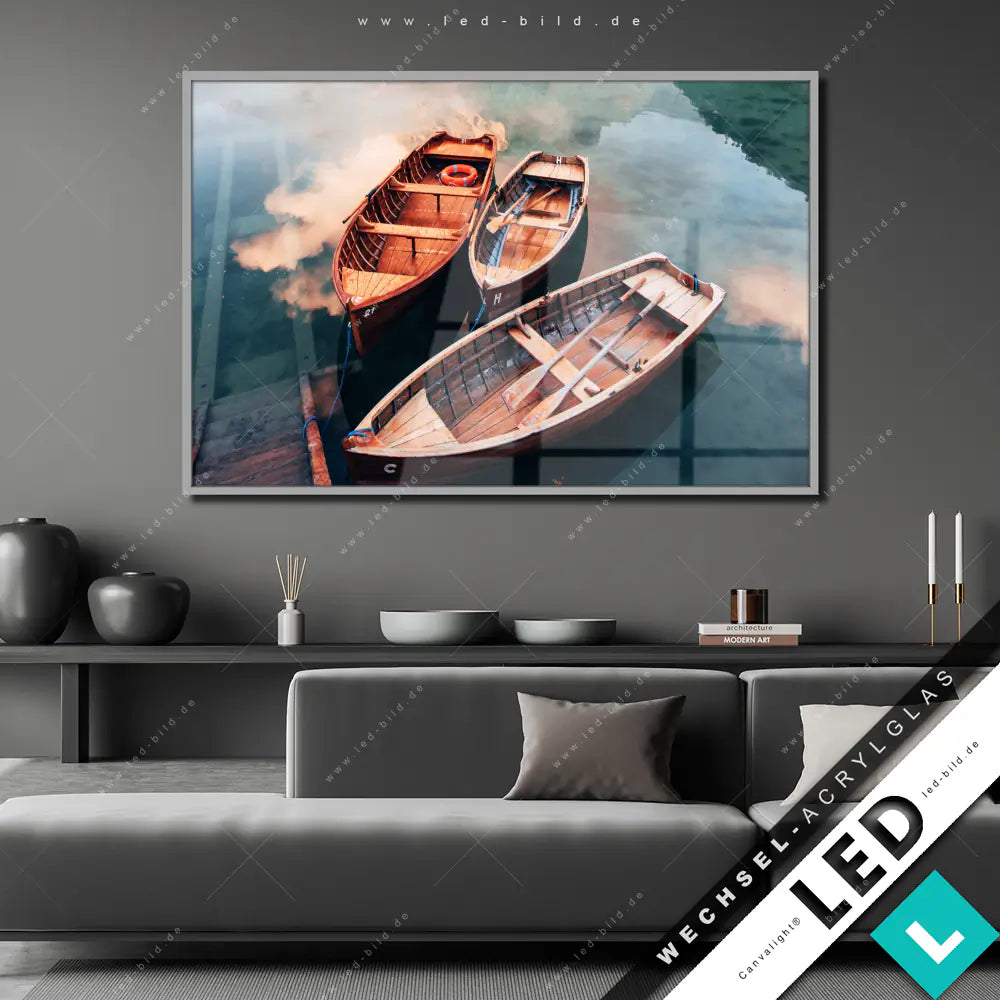 Canvalight® Wechsel-Acrylglas | Boote im Bergsee | Querformat