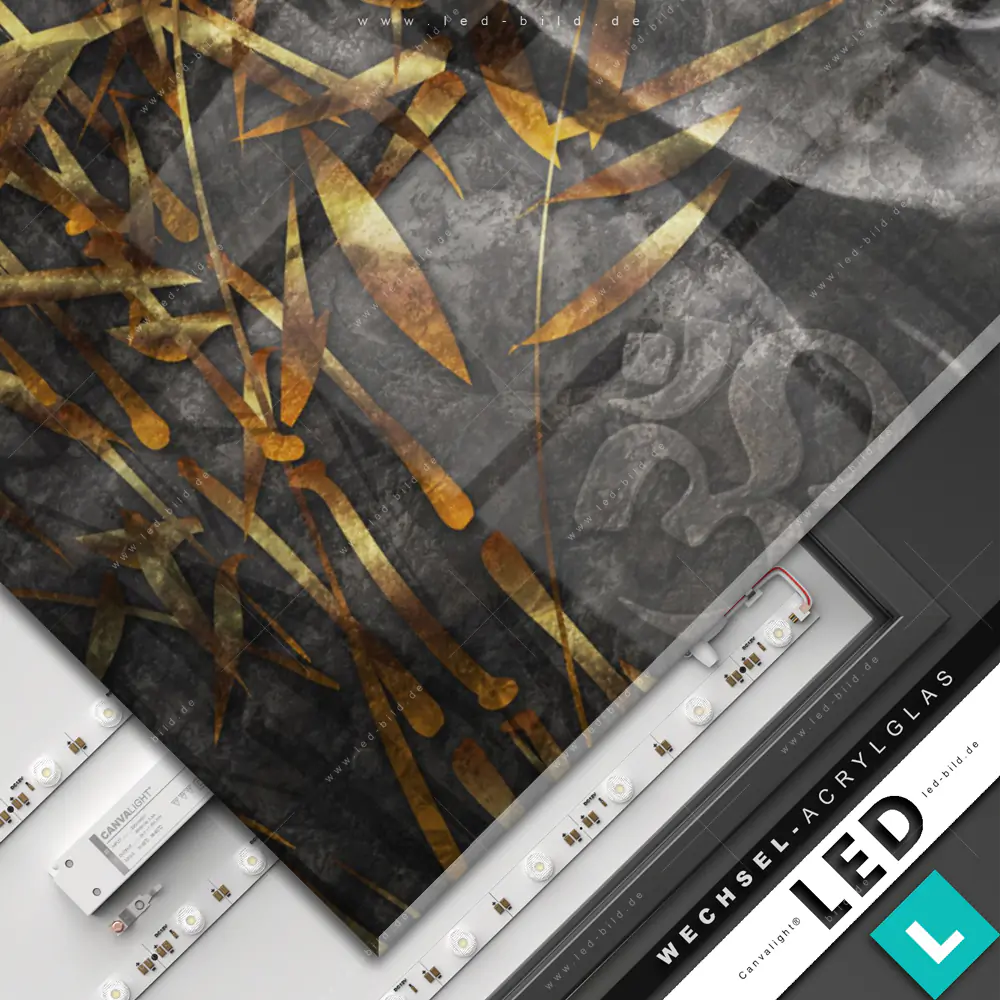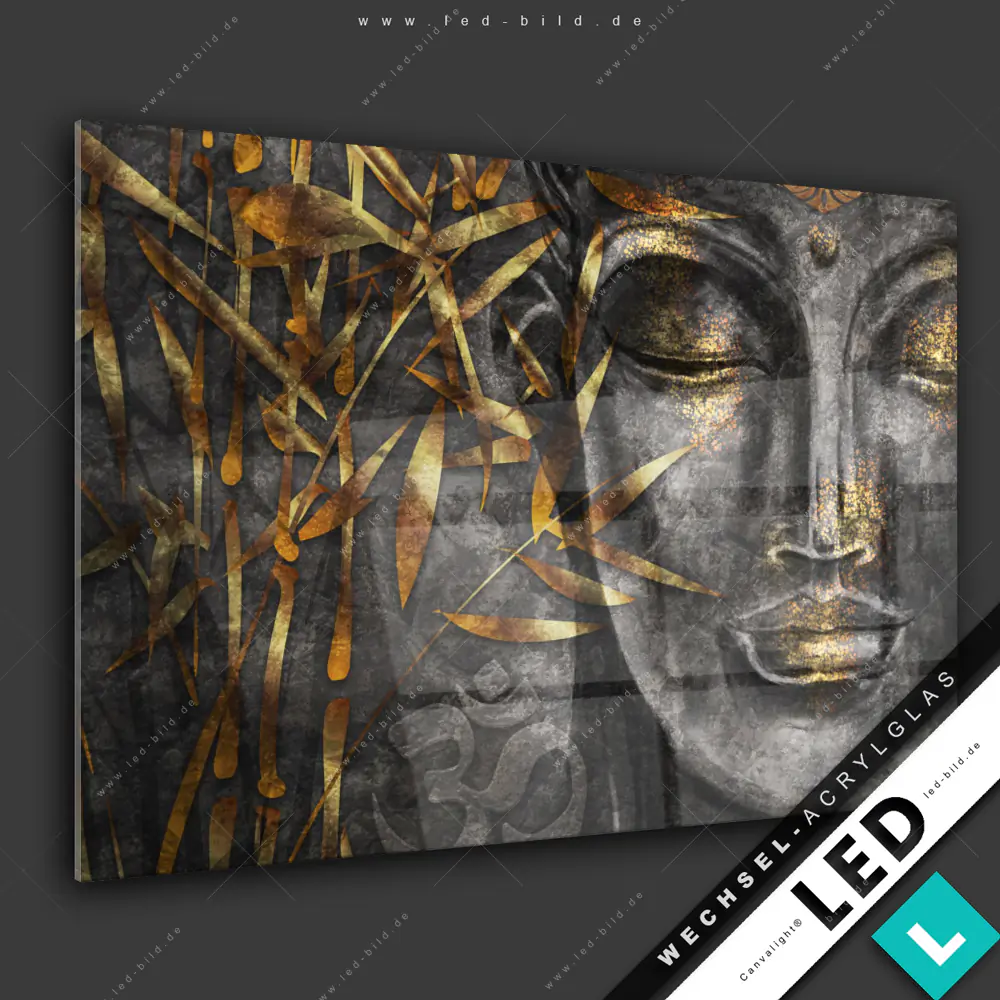 Canvalight® Wechsel-Acrylglas | Buddha & Bambus Schwarz | Querformat