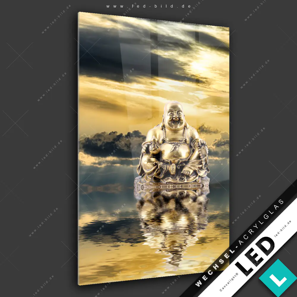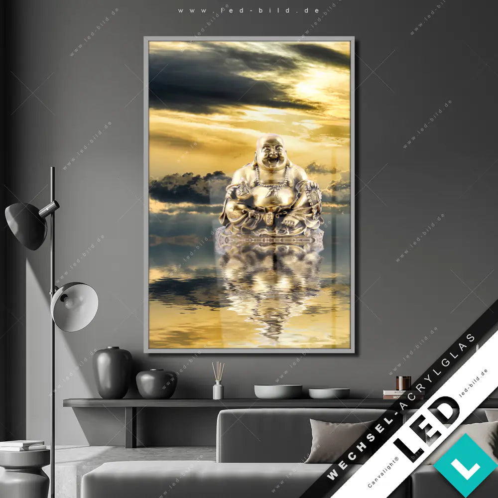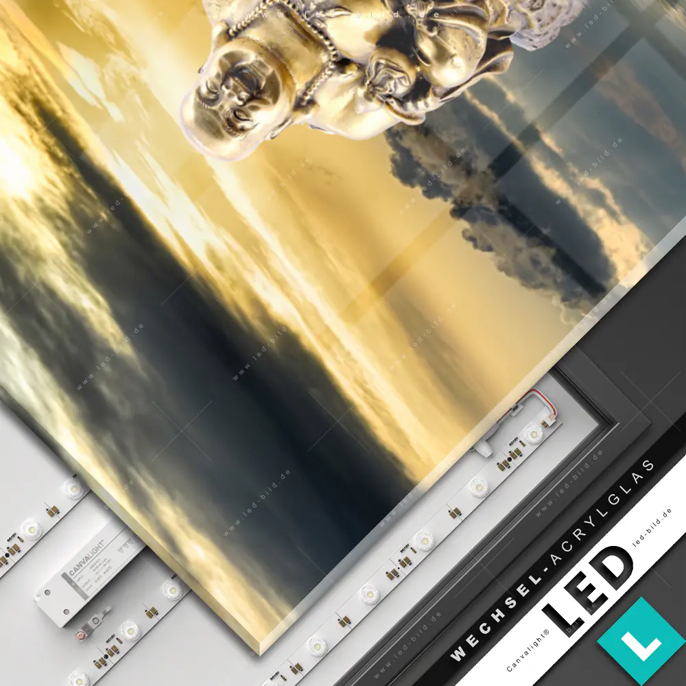 Canvalight® Wechsel-Acrylglas | Buddha bei Sonnenaufgang | Hochformat