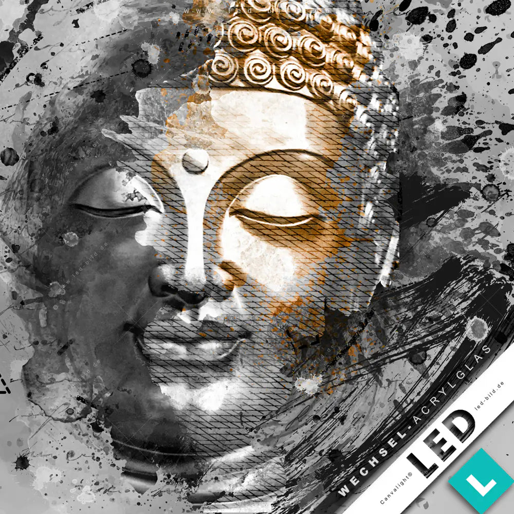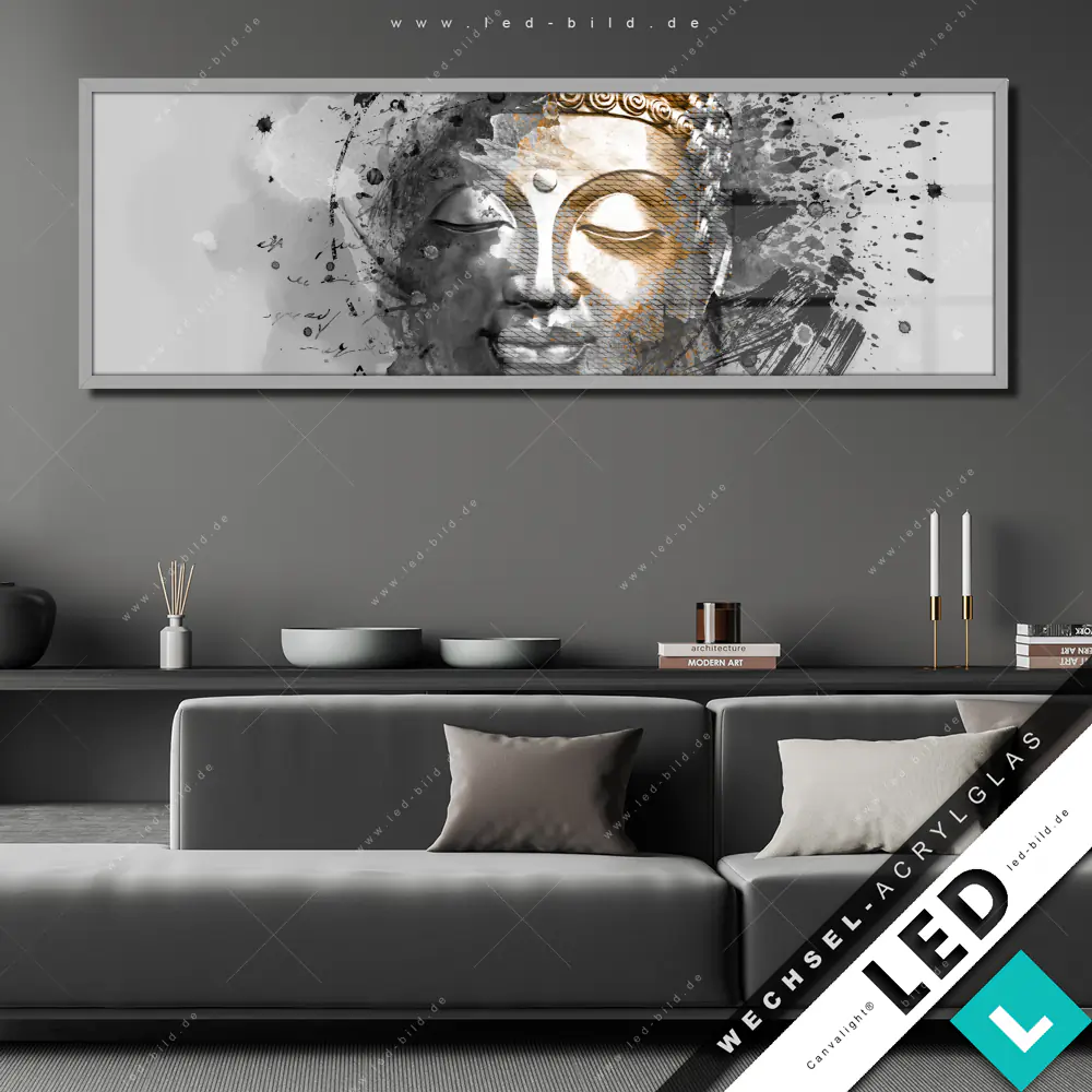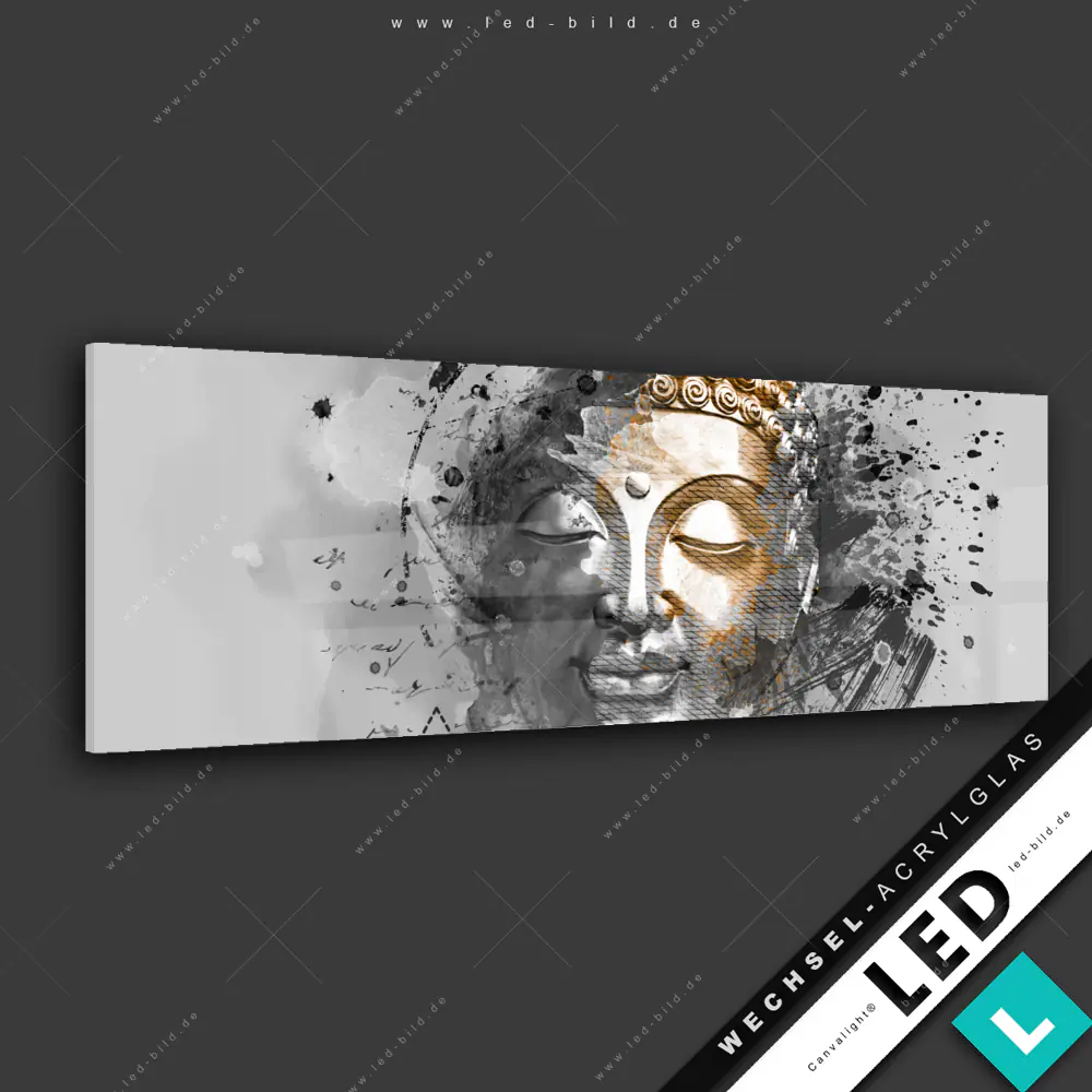 Canvalight® Wechsel-Acrylglas | Buddha - Grunge-Stil | Panorama
