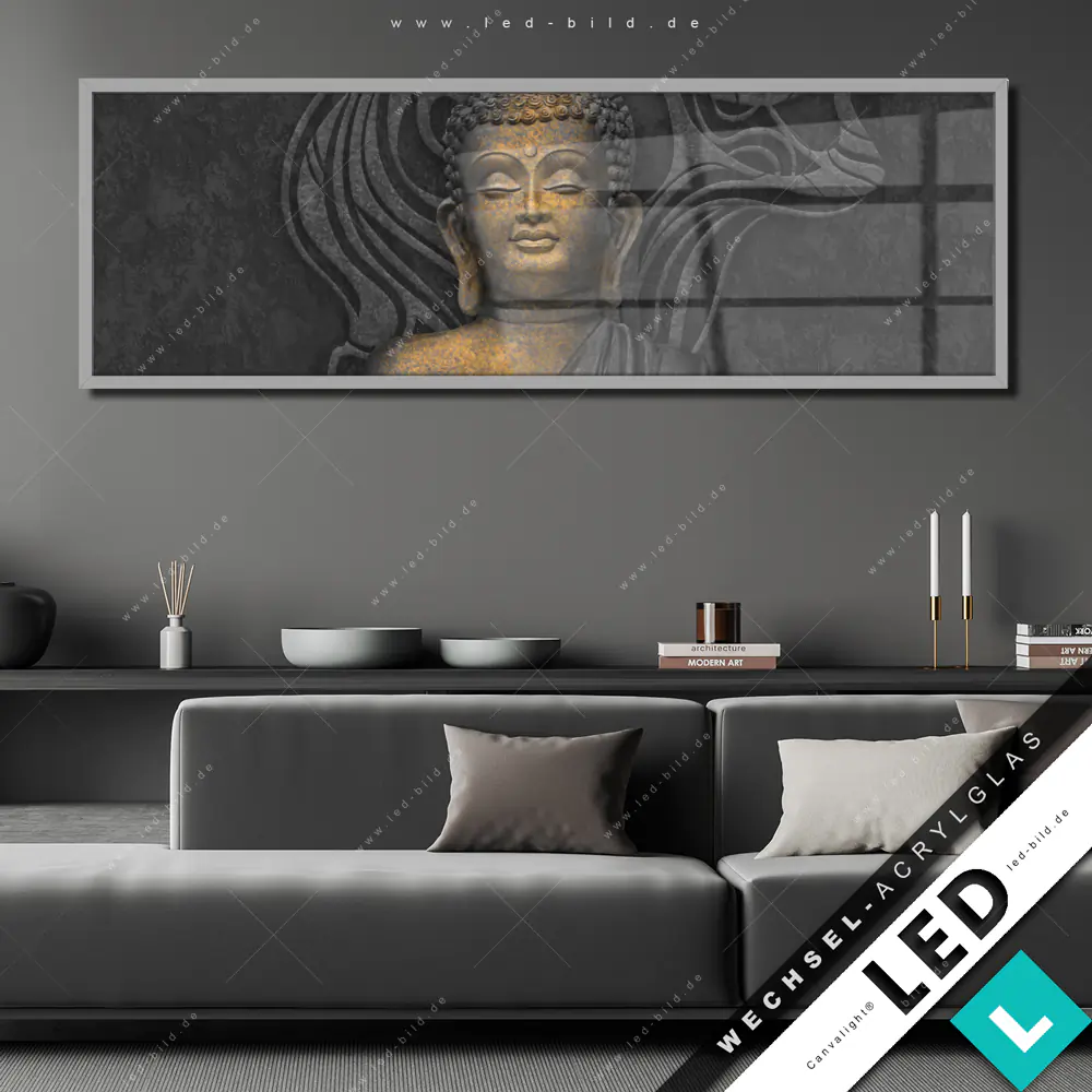 Canvalight® Wechsel-Acrylglas | Buddha in Lotus Pose | Panorama