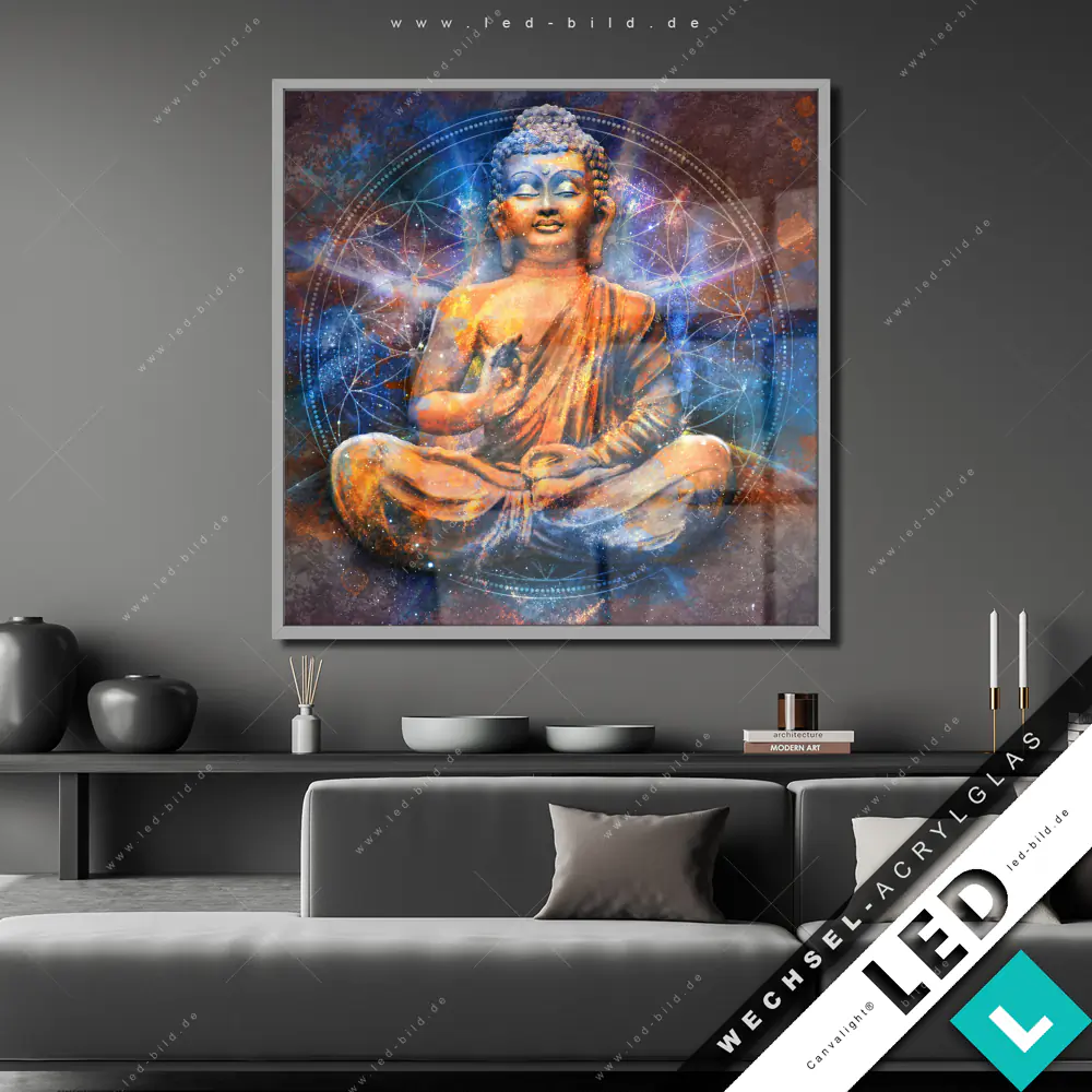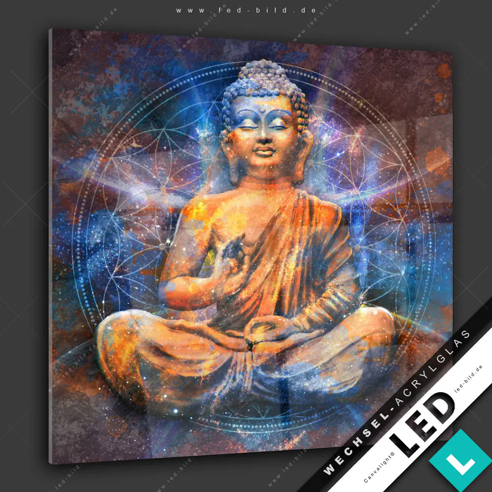 Canvalight® Wechsel-Acrylglas | Buddha in Meditation | Quadrat