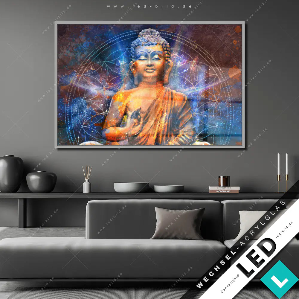 Canvalight® Wechsel-Acrylglas | Buddha in Meditation | Querformat